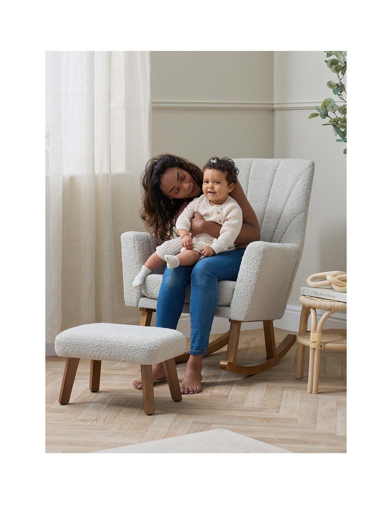Experience ultimate comfort and style with the Jonah Luxe Rocking Chair & Foot Stool. Crafted with a soft boucle fabric, this elegant and ergonomic chair is perfect for soothing moments with your little one. The gentle rocking motion helps calm and relax both baby and parent, while the padded and supportive backrest ensures maximum comfort. The matching footstool completes the set, offering a space to rest your feet and unwind. As your baby grows, it can be converted into a stylish armchair with fixed legs, becoming a statement piece in your home for years to come.