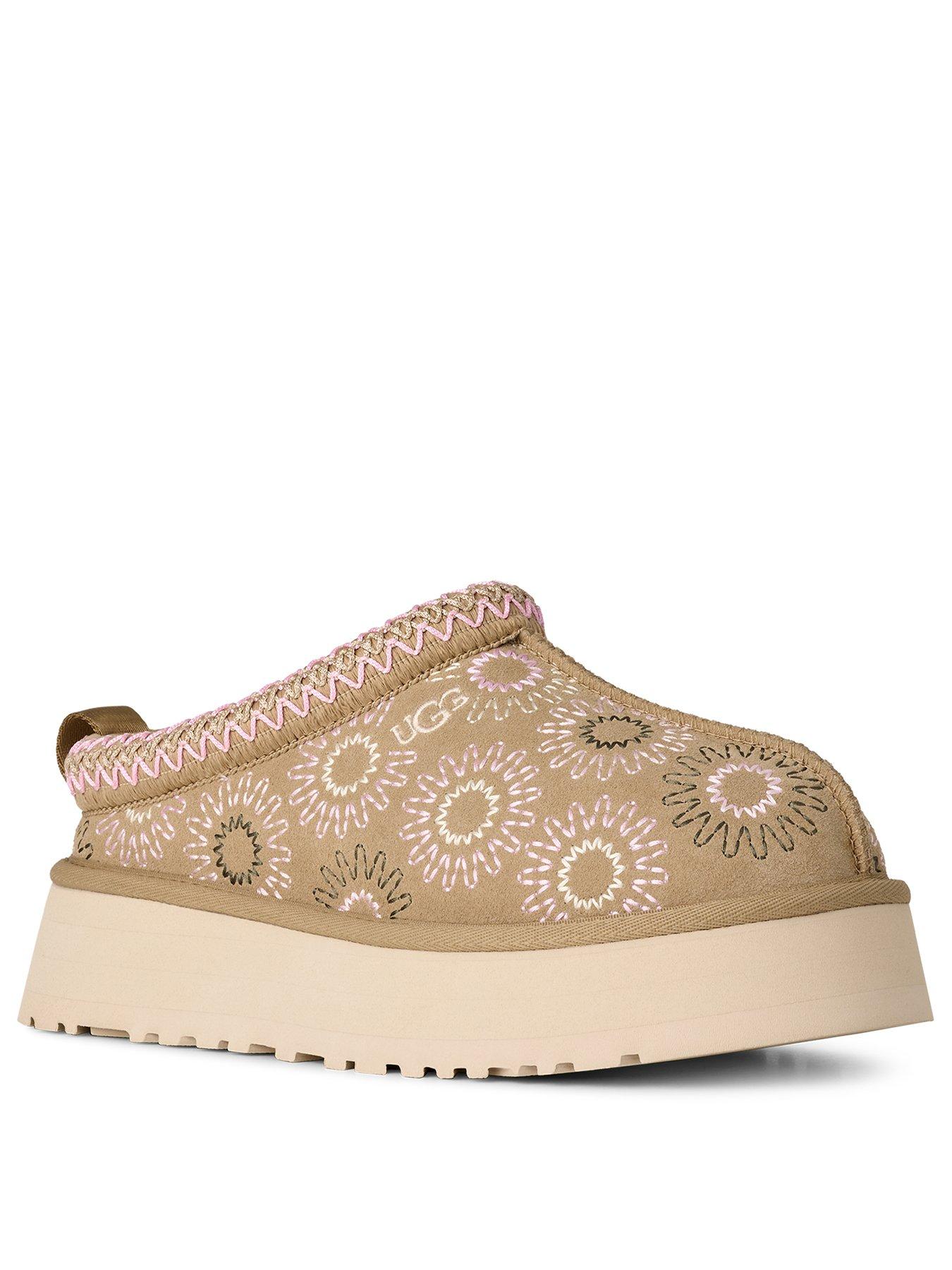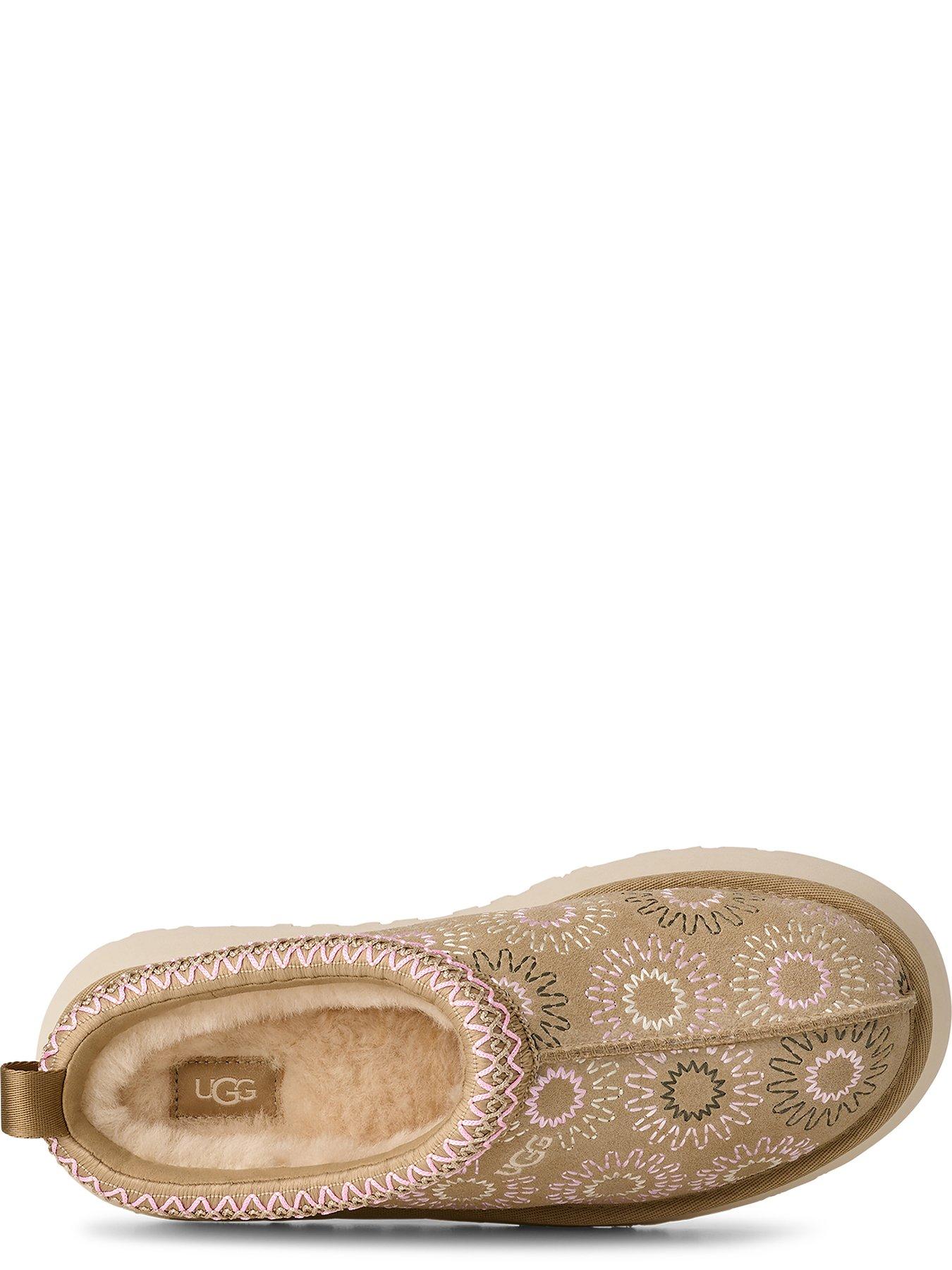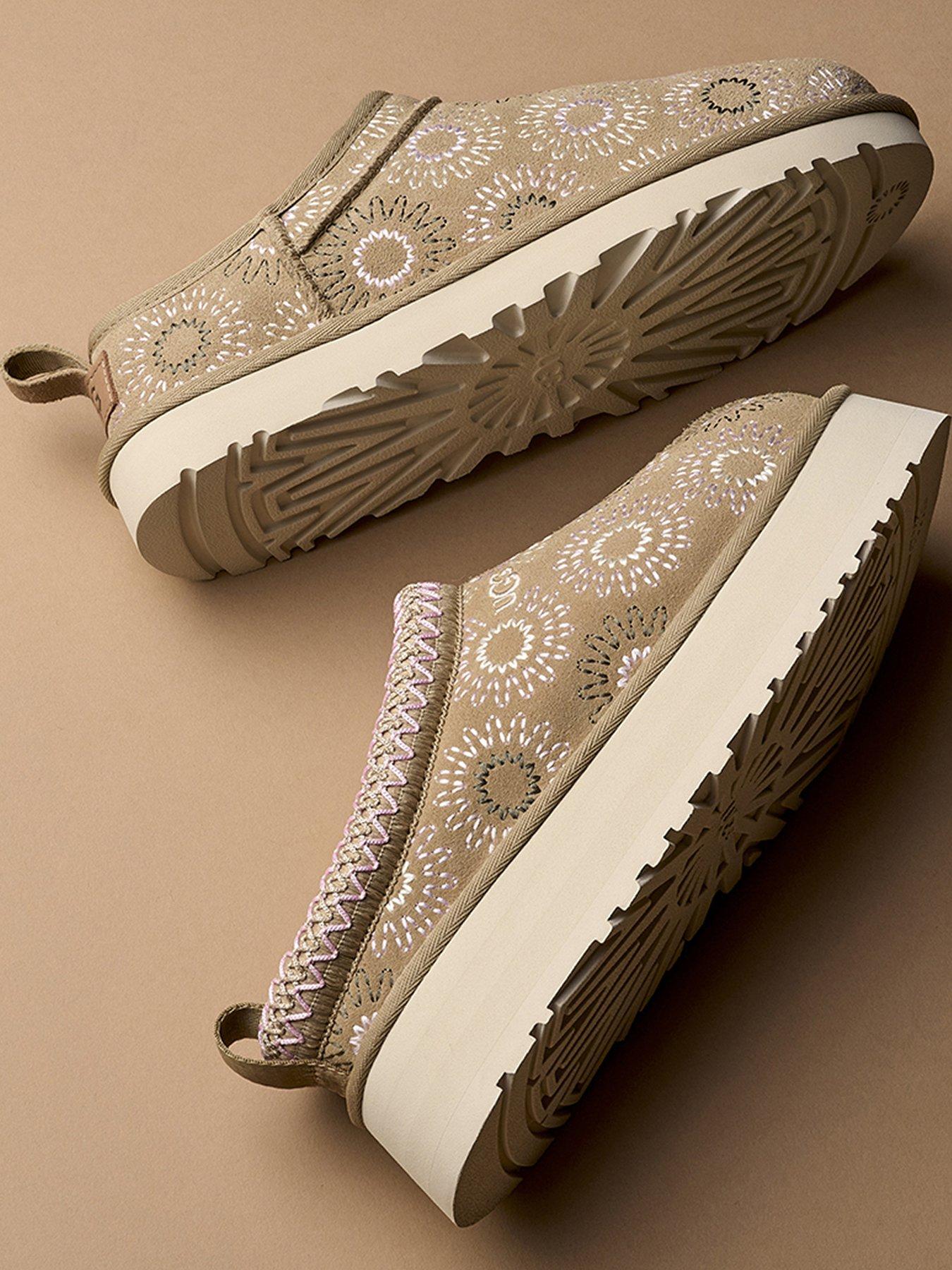 UGG Tazz Sun Stitch - Mustard SeedIn a sunshine state of mind. Our Tazz Sun Stitch takes the essential elements of your favorite Tazz II platform slip-on and adds our Sun Logo Shape with all-over embroidery across the suede upper. Featuring a lightweight sugarcane EVA outsole, our 100% recycled UGGbraid trim, and a plush sheepskin lining, it fits in as well at home as it does finding fun in the sun.This product was made in a factory that supports women in our supply chain with the help of HERproject, a collaborative initiative that creates partnerships with brands like ours to empower and educate women in the workplace.