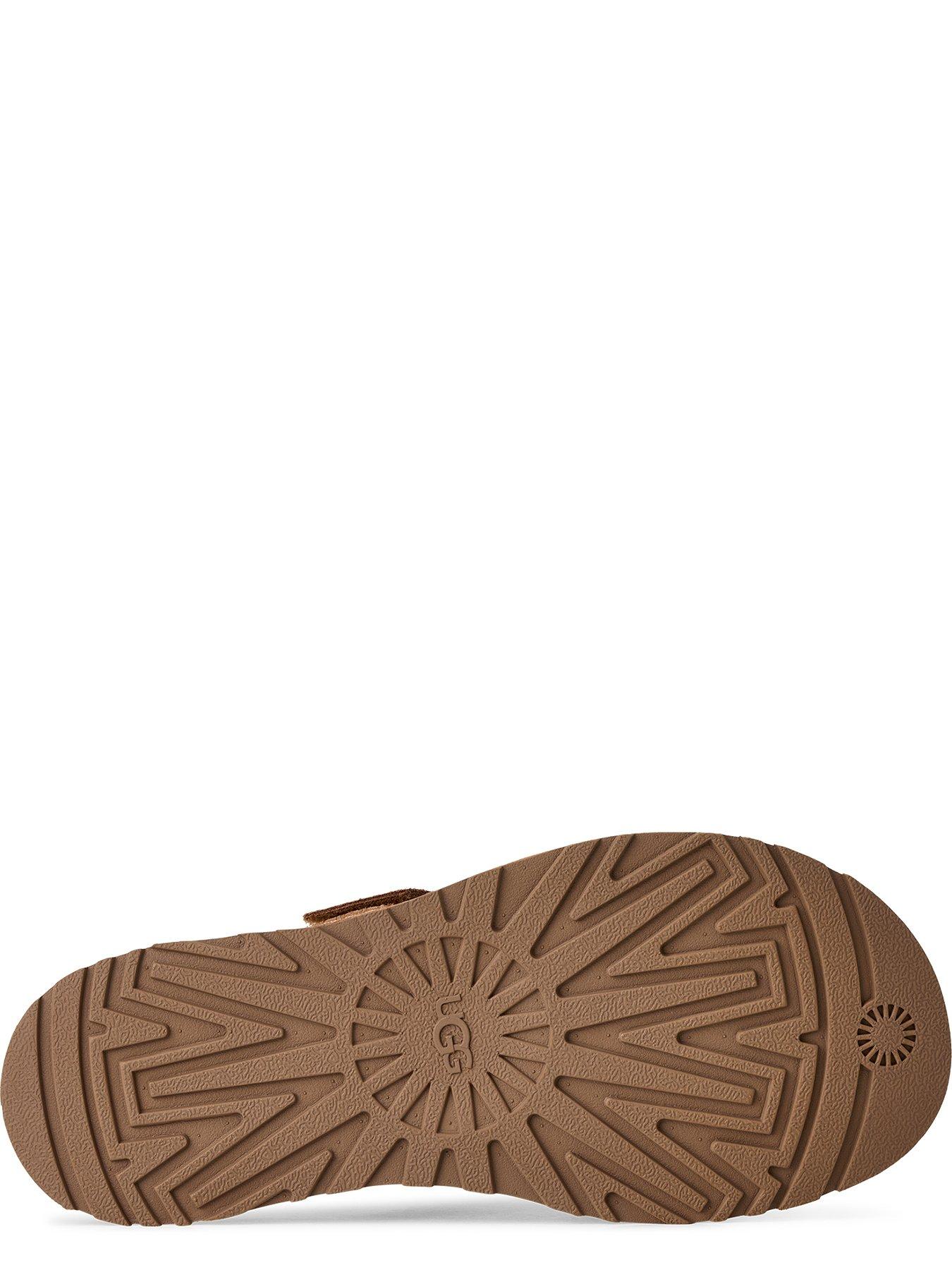 UGG W GOLDENGAZE SLIDEThe same UGG sandal comfort you know and love from our Goldenstar, now in a chic, sleek silhouette. Our low-profile GoldenGaze slide offers an elevated element to any outfit, making it the ideal companion for your day-to-night summer social calendar. An adjustable strap lets you find your just-right fit, and premium details make this a sandal worth telling your friends about, like the ultra-soft suede upper to the buttery leather lining and smooth microfiber footbed. Set on a sugarcane EVA outsole for cloud-like comfort, this slide is your new summer go-to.This product was made in a factory that supports women in our supply chain with the help of HERproject, a collaborative initiative that creates partnerships with brands like ours to empower and educate women in the workplace.