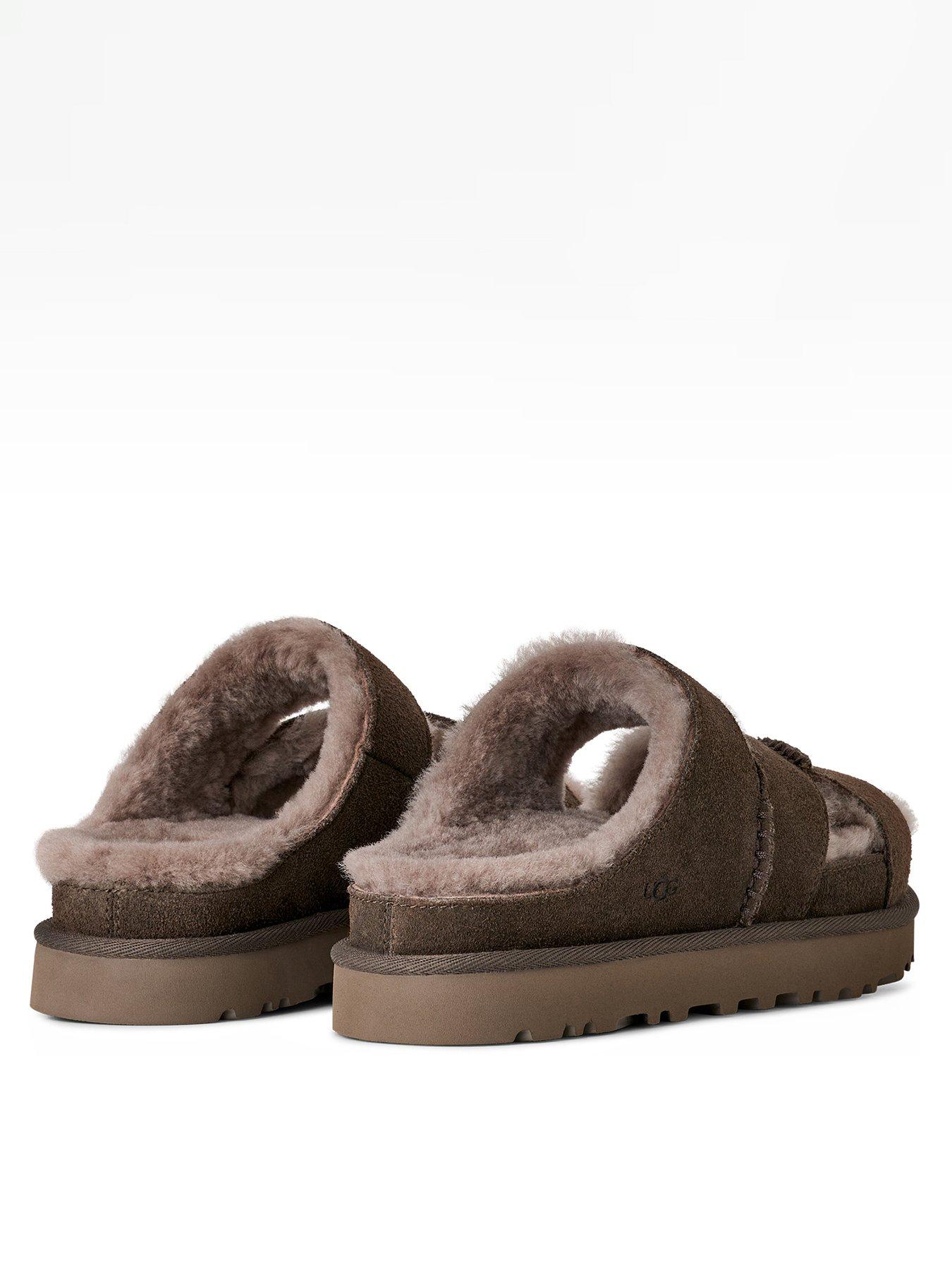 UGG W GREENPORT CROSS STRAP SLIDESlippers or sandals? Why choose. Our Greenport Cross Strap Slide keeps you cozy at home and serves all the comfort as you run around town. The genuine suede upper and sheepskin lining are the UGG details you know and love, while the crisscross cutout straps breathe new life and make this slide anything but basic. Finished off with a sugarcane EVA outsole for lightweight cushioning, no matter where you wear them.This product was made in a factory that supports women in our supply chain with the help of HERproject, a collaborative initiative that creates partnerships with brands like ours to empower and educate women in the workplace.