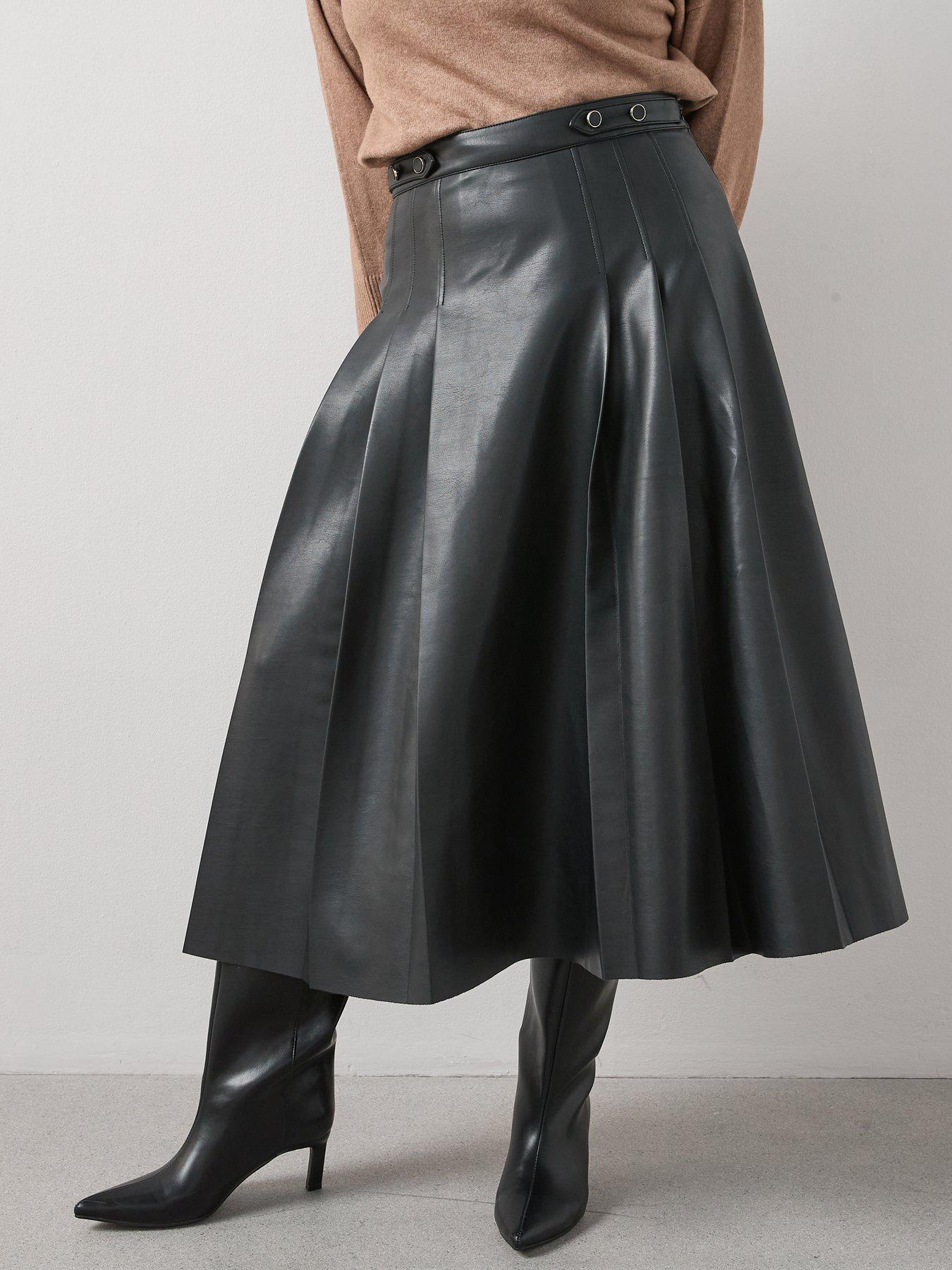 • Crafted from faux leather (PU), this skirt offers a sleek, slightly glossy finish that instantly elevates any outfit. The pleated design adds movement and softness, balancing out the tougher texture of the PU. And the midi length keeps it elegant and flattering, skimming the calves for a silhouette that works across seasons.