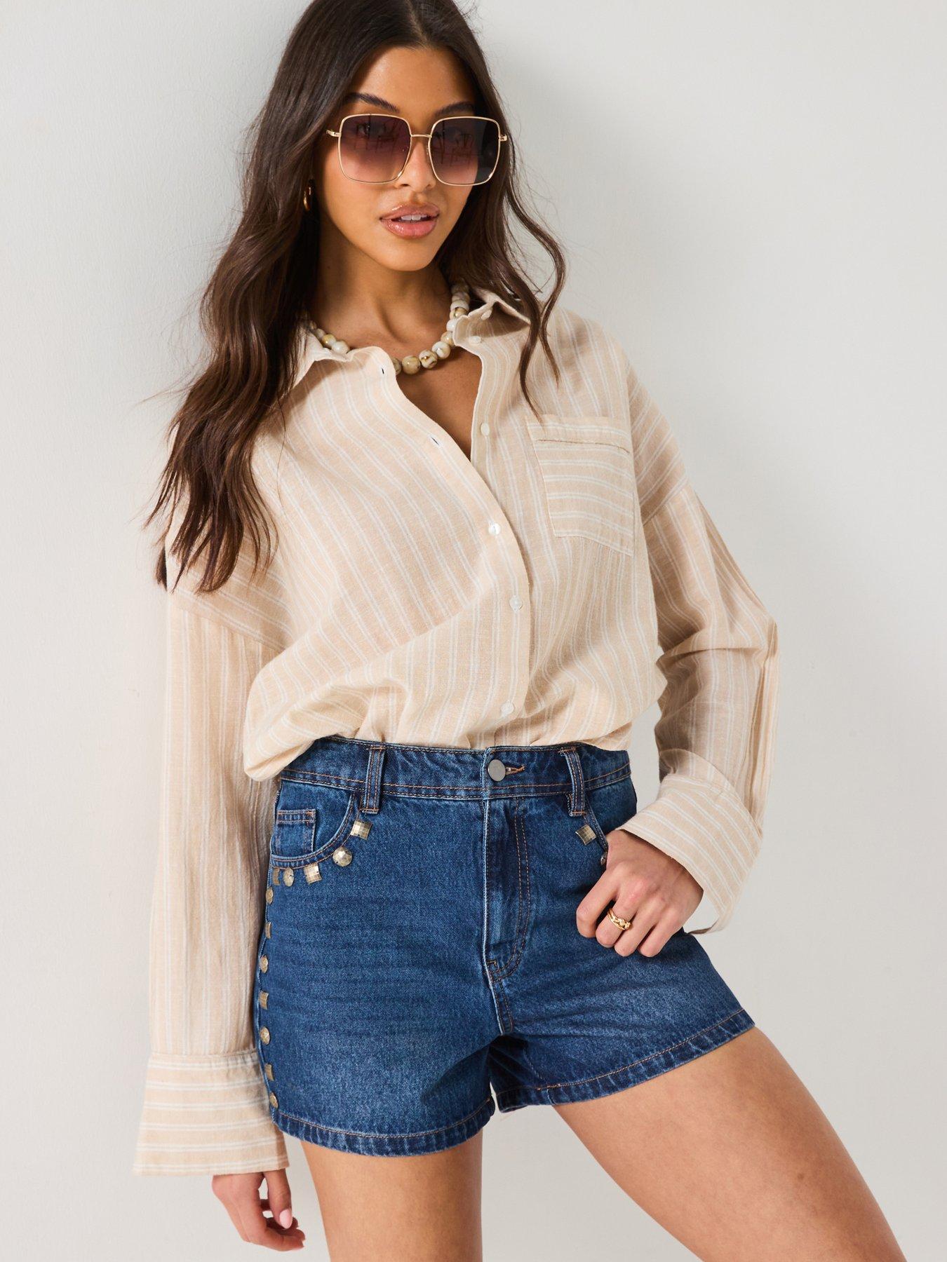 V by Very Denim Shorts With Stud Trim