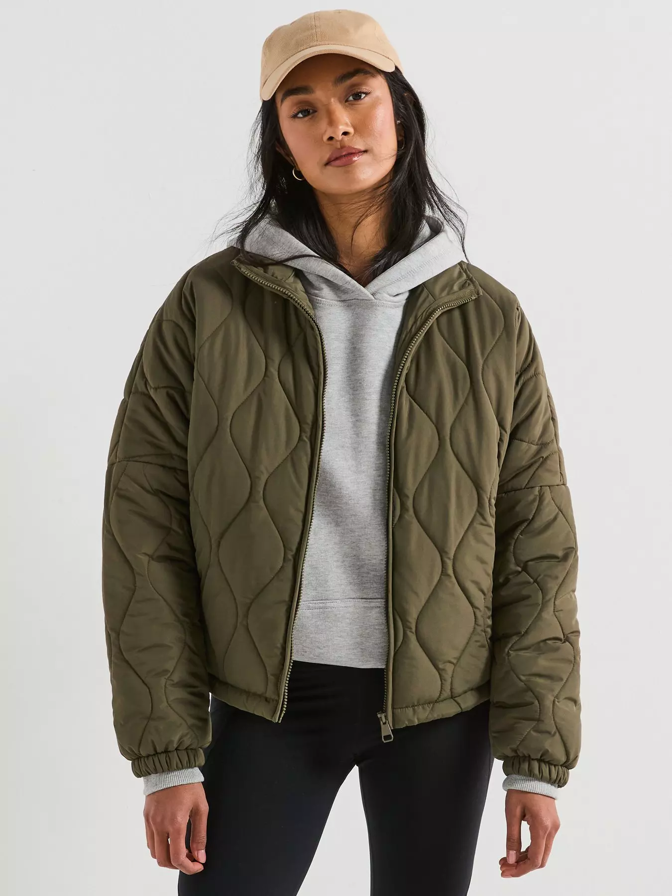V by VeryFunnel Neck Quilted Bomber - Khaki