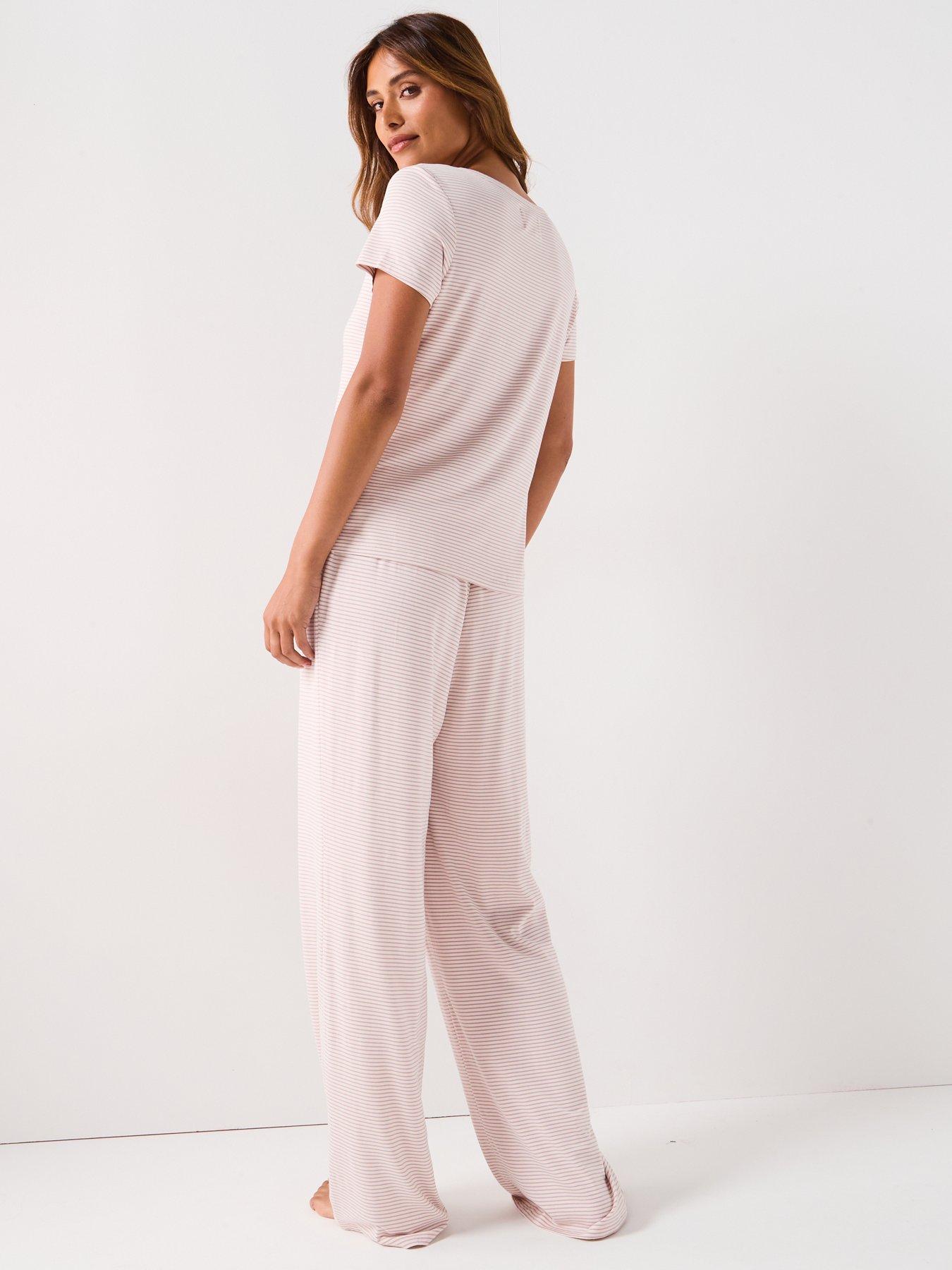• Jersey Henley Top With Stripe Wide Leg Trouser Pj Set from V by Very