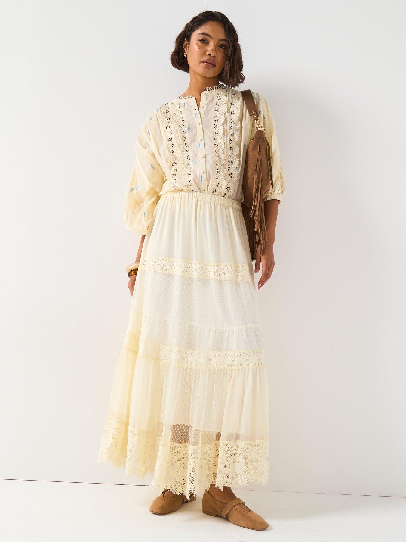 V by Very Lace Insert Balloon Sleeve Foil Blouse
