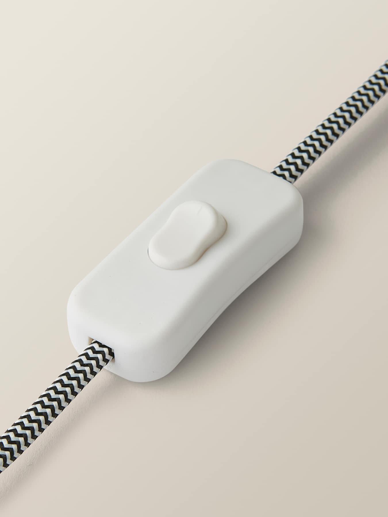 Material Content: An imitation marble base made of resin with a fabric shade. Features a rocker switch on a 150cm cable.