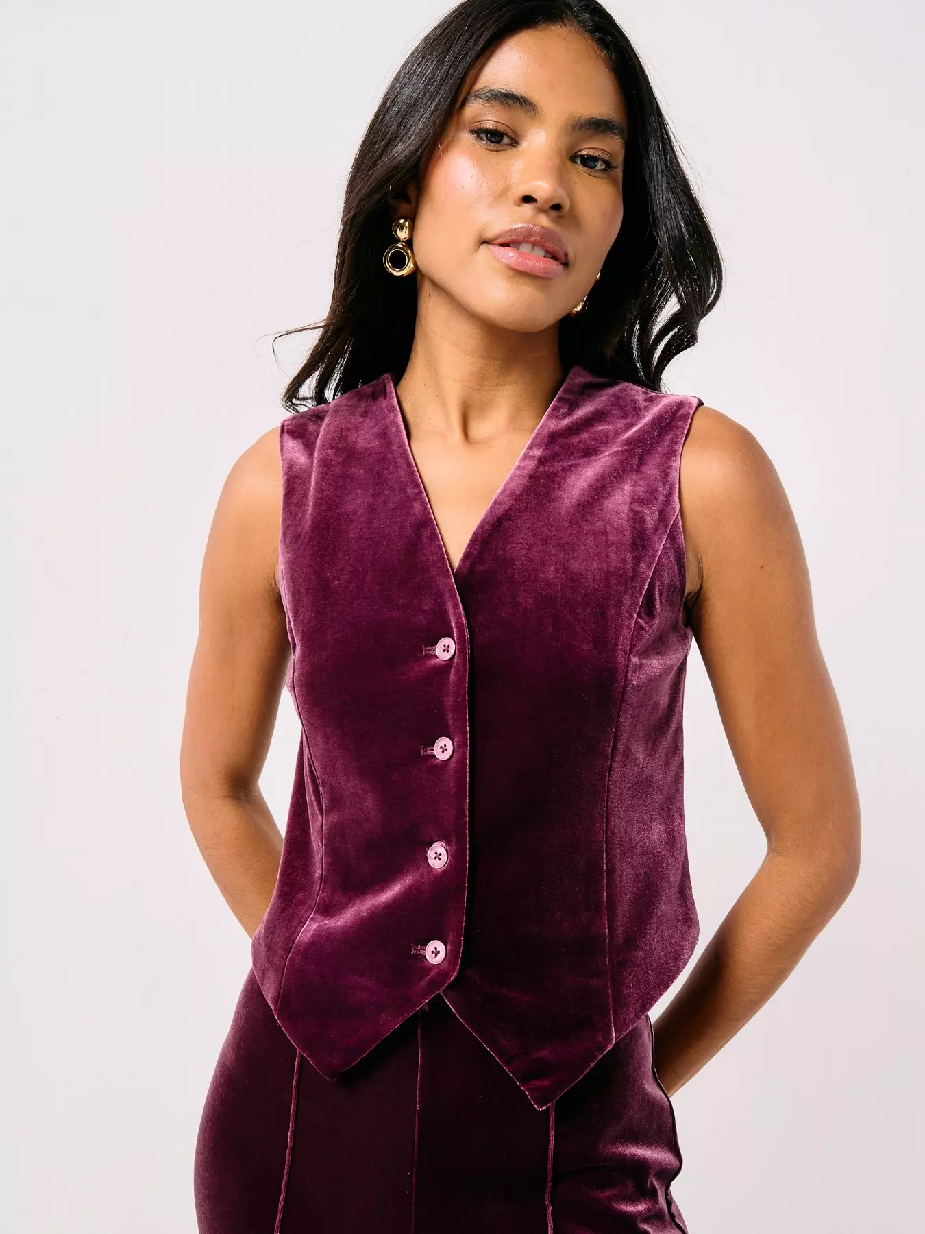 Vero ModaShanna Velvet Waistcoat - Plum