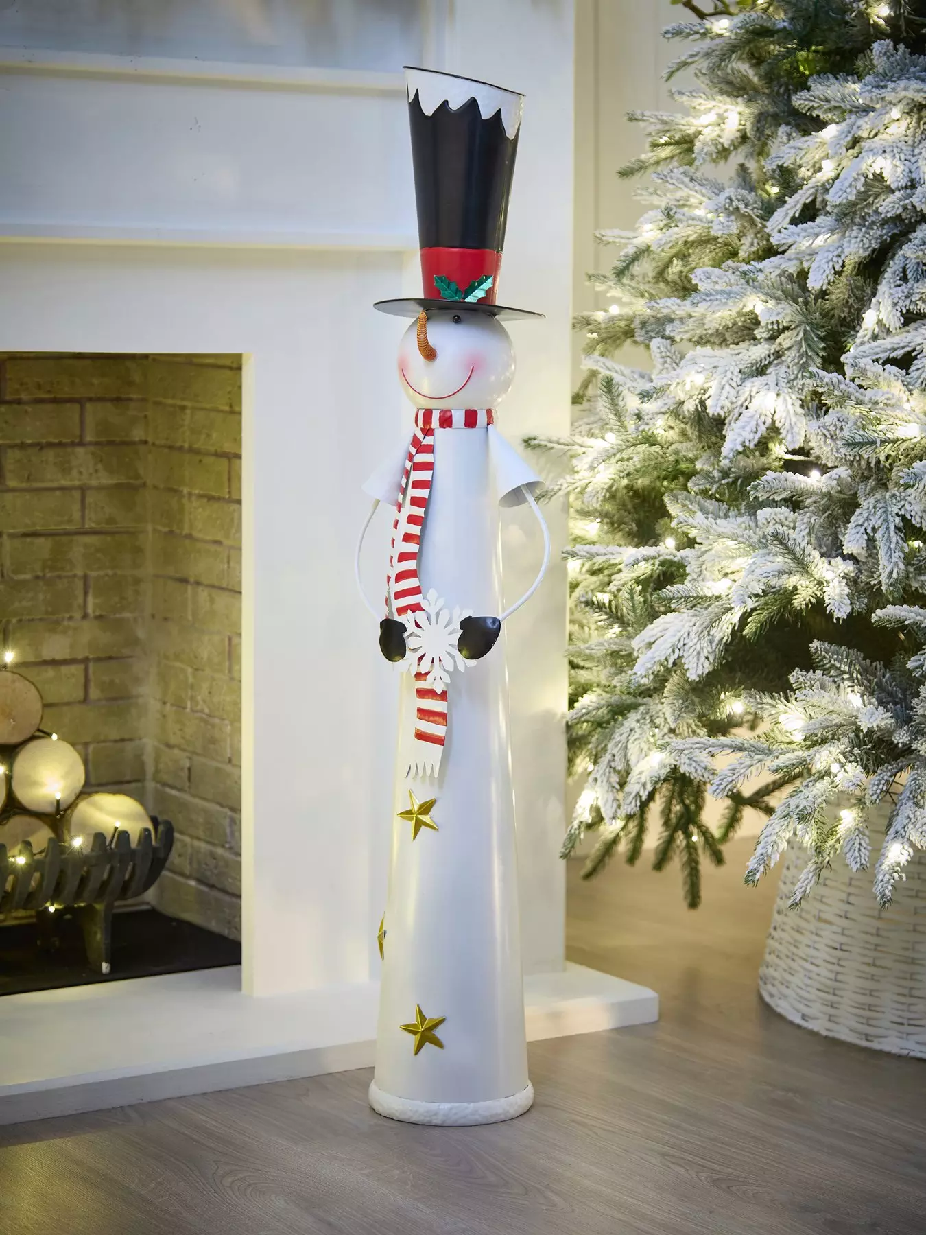 Standing over a metre tall, this quirky snowman Christmas decoration is made from metal and is perfect for sitting in front of the tree or beside your fireplace. And unlike a real snowman you don't have to worry about him melting when the sun comes out - simply pack him away after Christmas and bring him out year after year.Size: