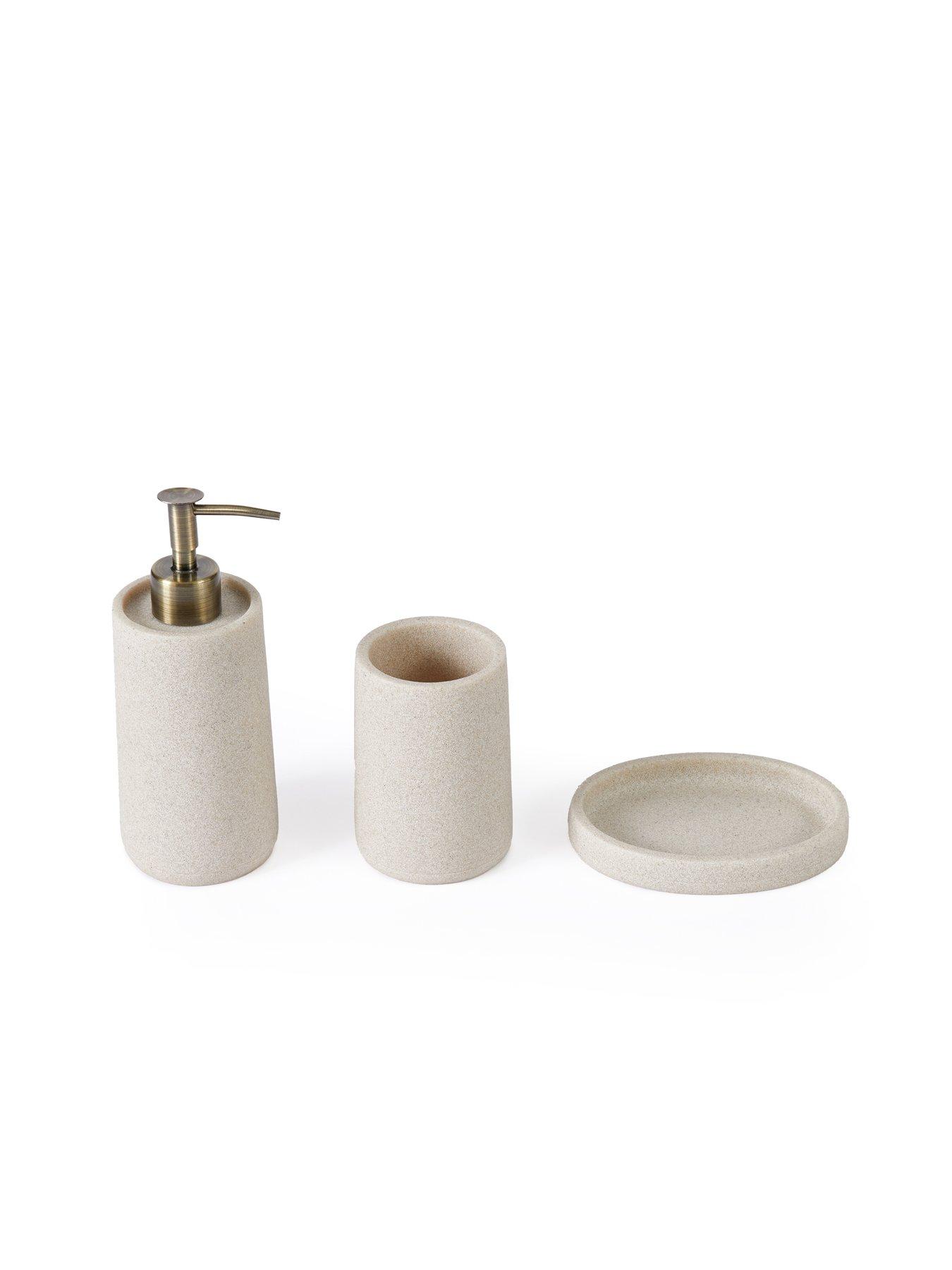 Bathroom accessories with soap dispenser, toothbrush holder and soap dish, sand color