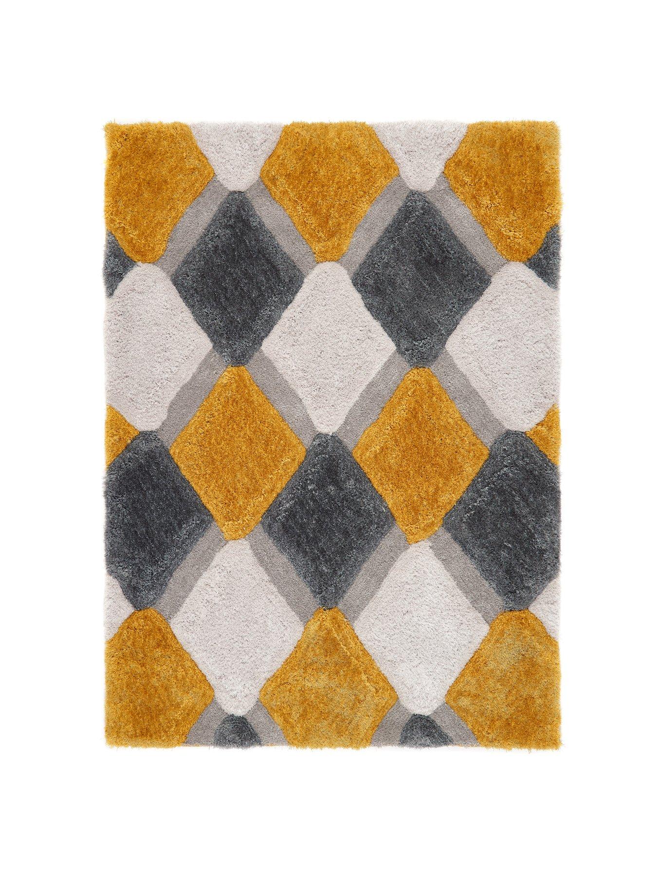 Origins 3D Geo Shaggy Ochre Rug in 3 size optionsThis Origins rug is made from a soft and durable polyester yarn which ensures it's as sumptuous to walk on as it is striking to look at.The carved design creates a 3D effect that brilliantly shows off the geometric patterns and bold mix of colours. Choose from the following sizes to suit the layout of your room: - 80x 150 cm - 120 x 170 cm - 160 x 230 cm