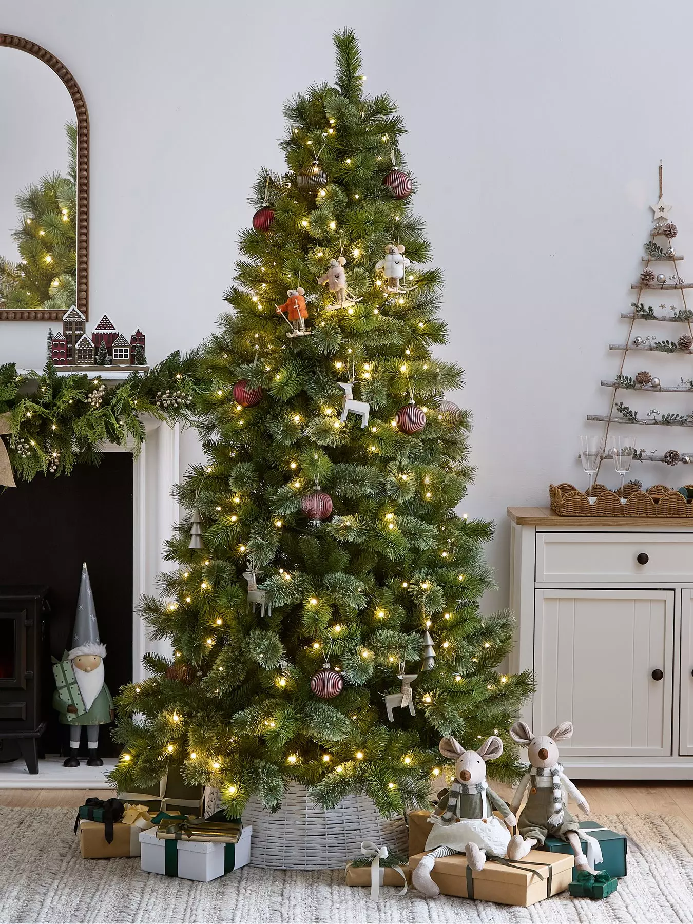 Looking like it's been plucked from an alpine forest, this Mirabelle Christmas tree is packed with 940 lush tips for a full look, while 300 warm white LED lights do away with the need to wrestle with the string of fairy lights. Comes complete with a 56 cm metal base to keep it steady.You've found the perfect Christmas tree, now all you need to do is dress it. Check out our fab range of festive tree decorations to find some inspiration.