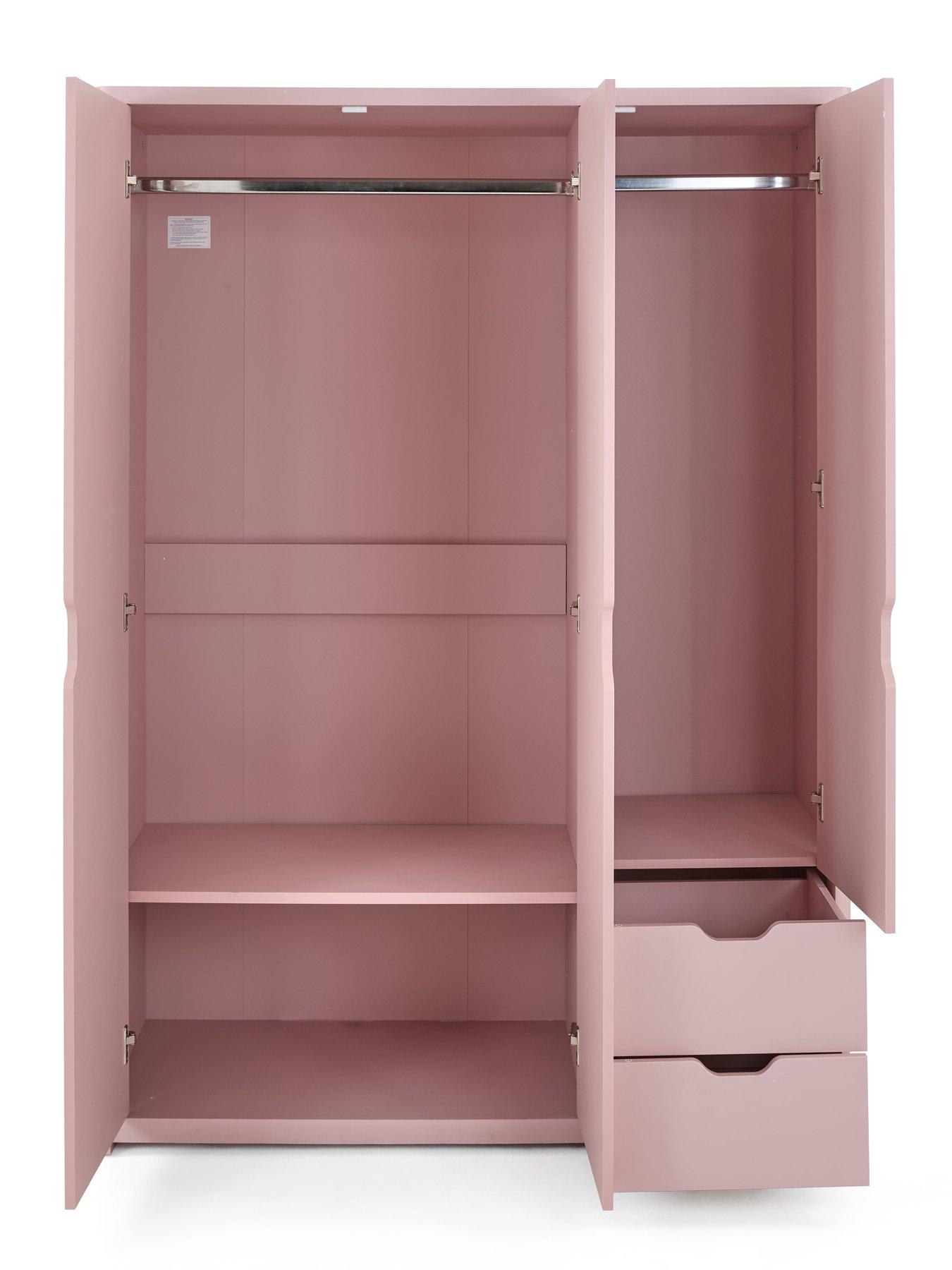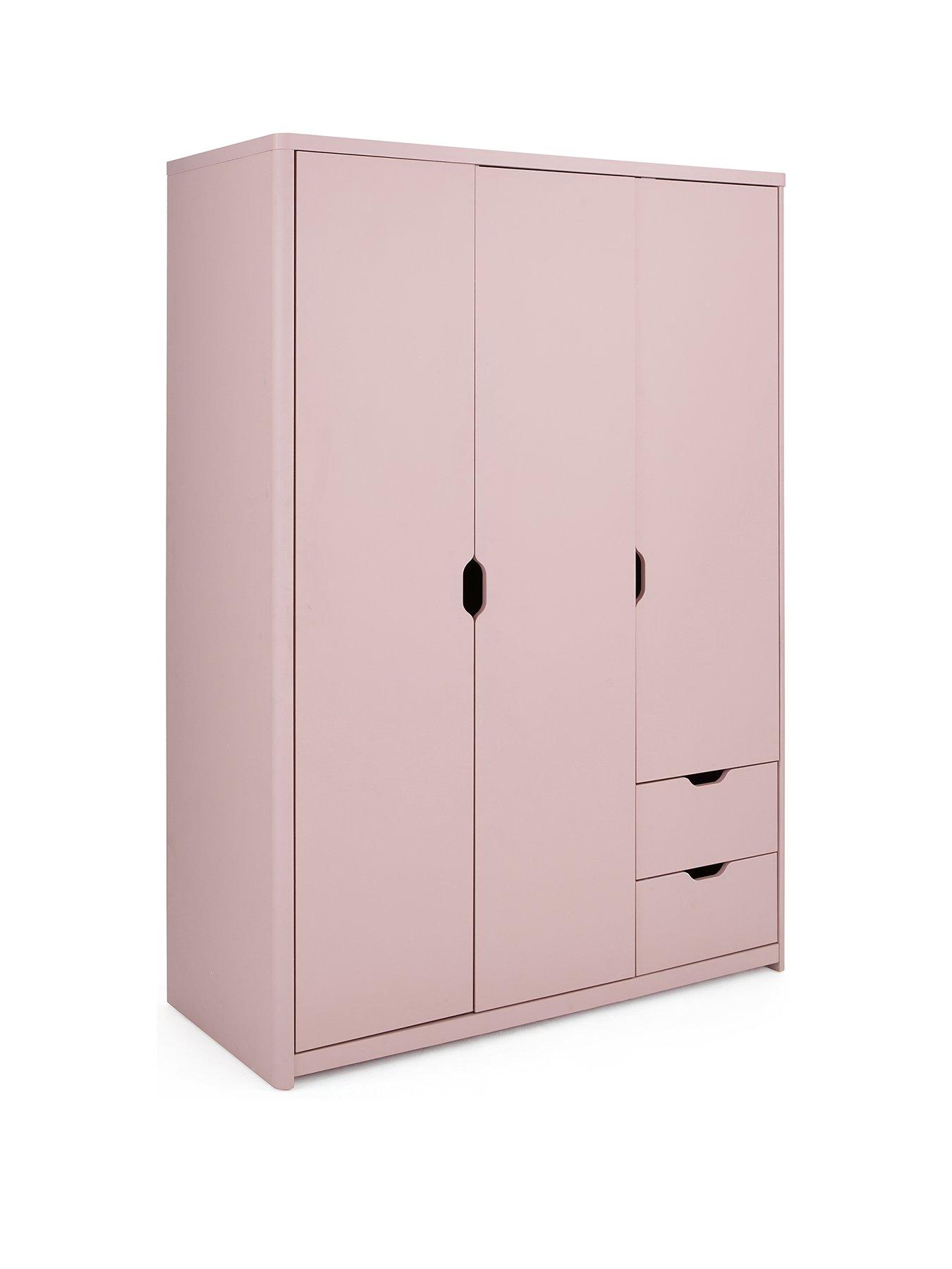 This great value 3 Piece Bedroom Furniture Package from the Aspen range by Very Home comprises a 3 Door, 2 Drawer Wardrobe, 4 + 2 Chest of Drawers and a 1 Drawer Bedside TablePerfect for furnishing a kids bedroom in one easy purchase, this 3 piece set from Very Home's Aspen collection features a pink finish.The set contains a 3 door wardrobe that contains hanging rails plus shelves, and features a pair of drawers for added clothes storage. There's also a chest with 2 small drawers at the top and 4 larger drawers underneath, so they can neatly separate their tees, underwear, socks and more. A single drawer bedside chest finishes the package, and each piece is styled with smooth rounded corners, curvy cut-out handles and easy-glide metal runners. Please remember to measure your available space before ordering. Dimensions: Wardrobe - Height 175, Width 124, Depth 53 cm Chest of drawers - Height 88.5, Width 73, Depth 39 cm Bedside chest - Height 56, Width 39, Depth 29 cm Chest of drawers internal dimensions of drawers: Upper: (W) 27.7 x (D) 28.6 x (H) 8.8 cm Lower: (W)61.9 x (D)28. 6 x (H)8.8 cm