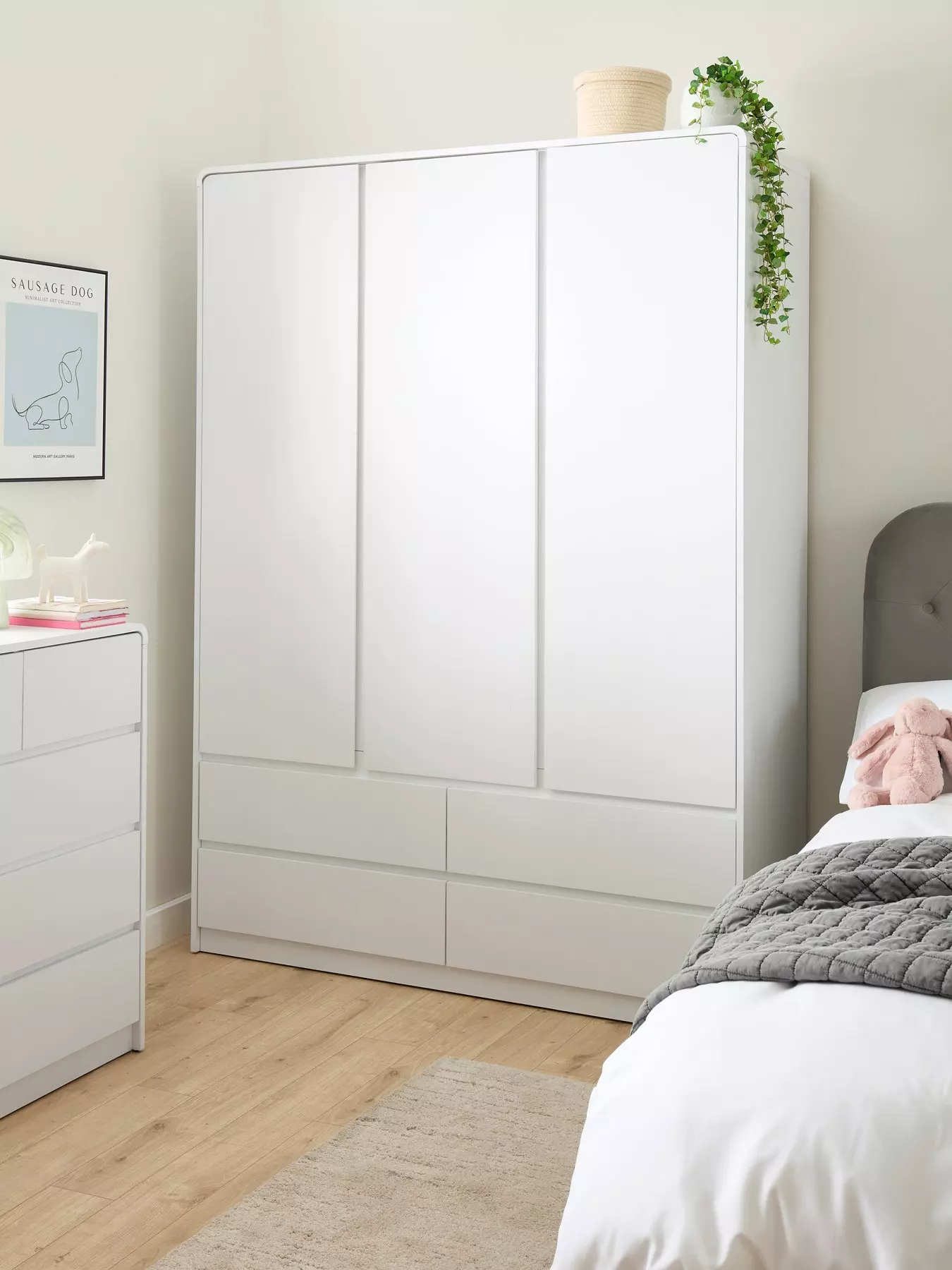 Very Home Bailey Children's 3 Door, 4 Drawer Wardrobe in White - FSC® Certified