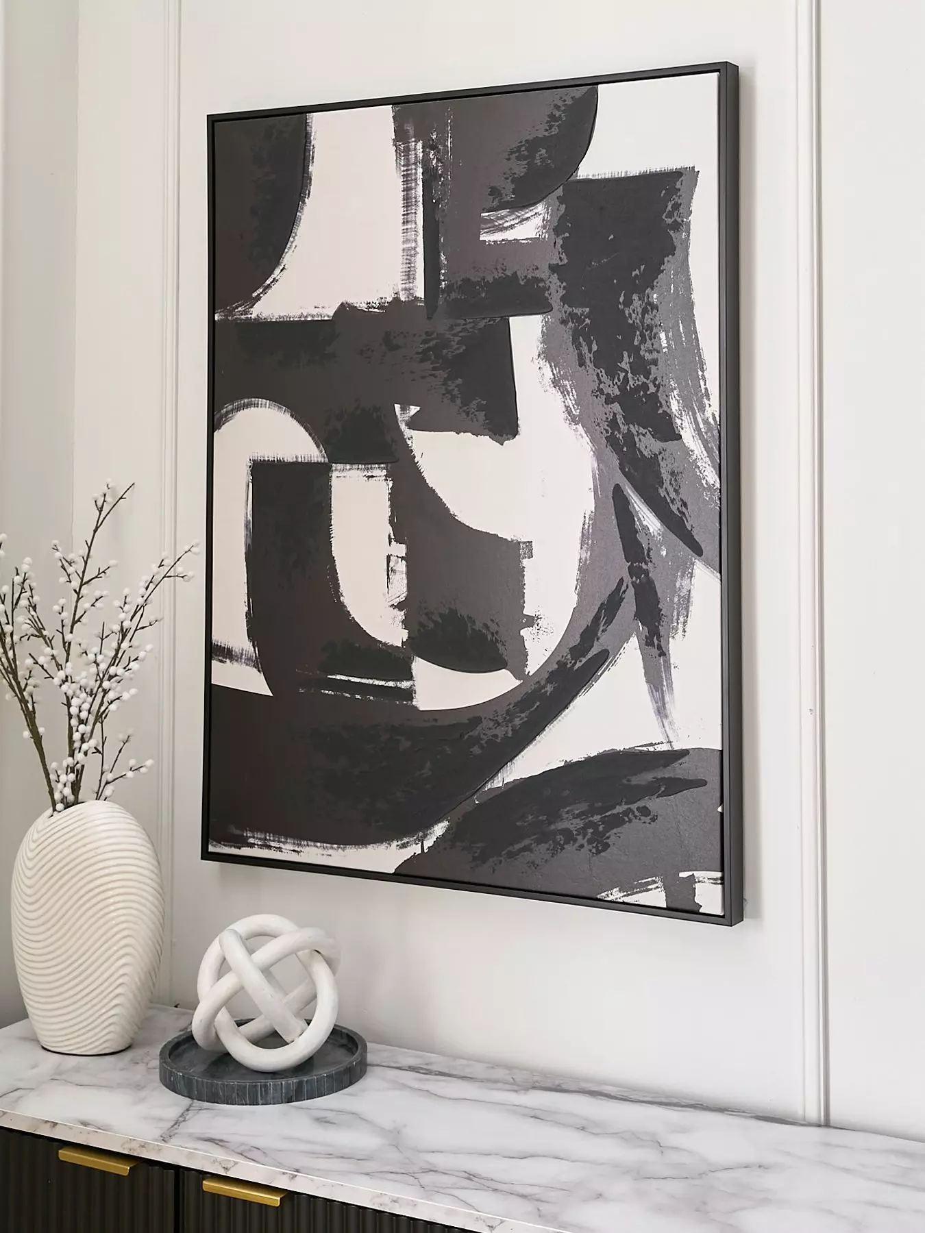 Black and White Canvas: Hand-Painted Lines, Printed Precision. A striking blend of artistry and modern design.This product is made from FSC ® certified Wood. The Forest Stewardship Council®(FSC®) is a global, not-for-profit organisation dedicated to the promotion of responsible forest management.
