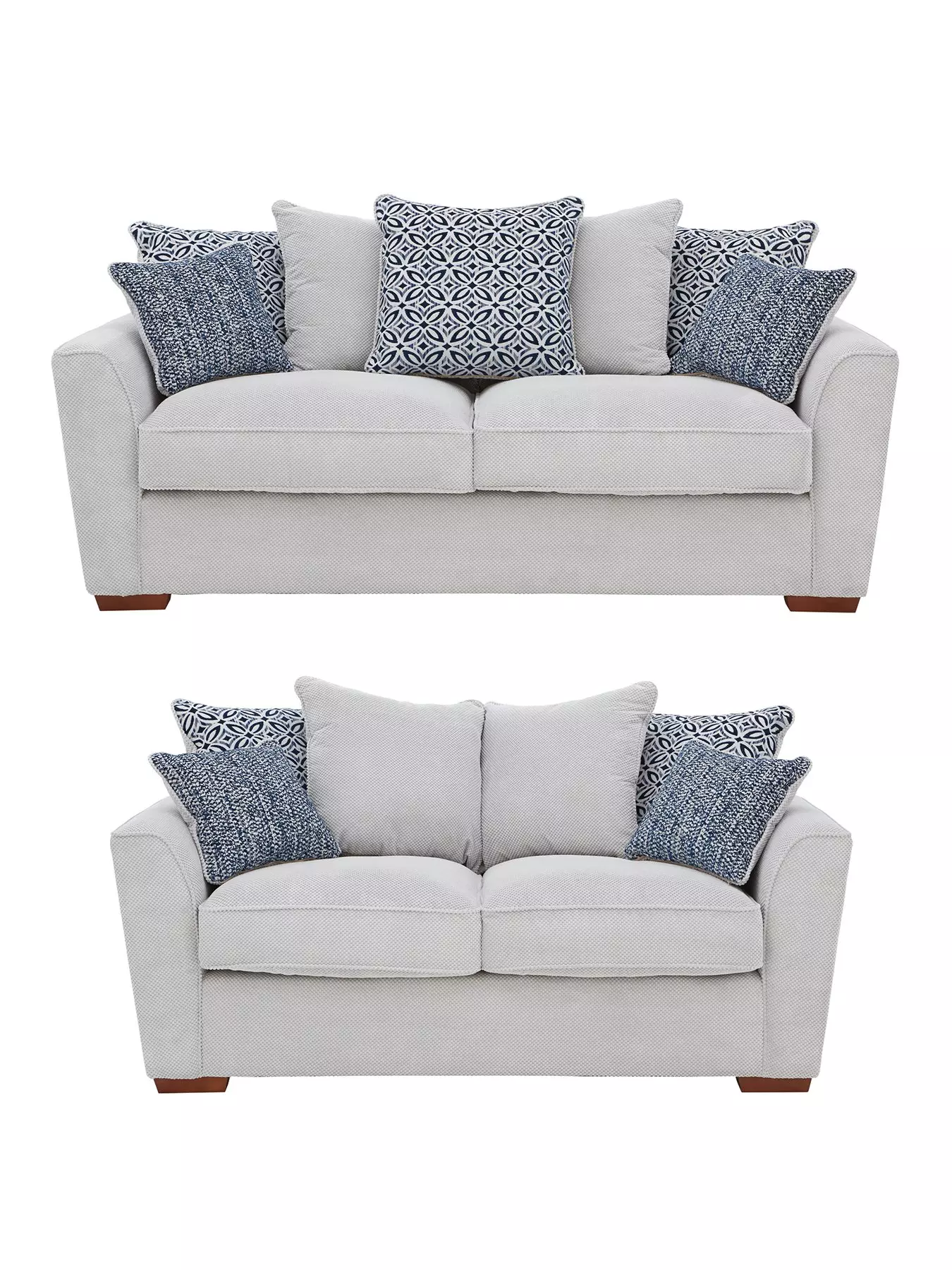 Tough day at work? Sit down, switch off and chill out on this sofa suite's creamy soft-touch fabric that comes in a choice of silver or charcoal.