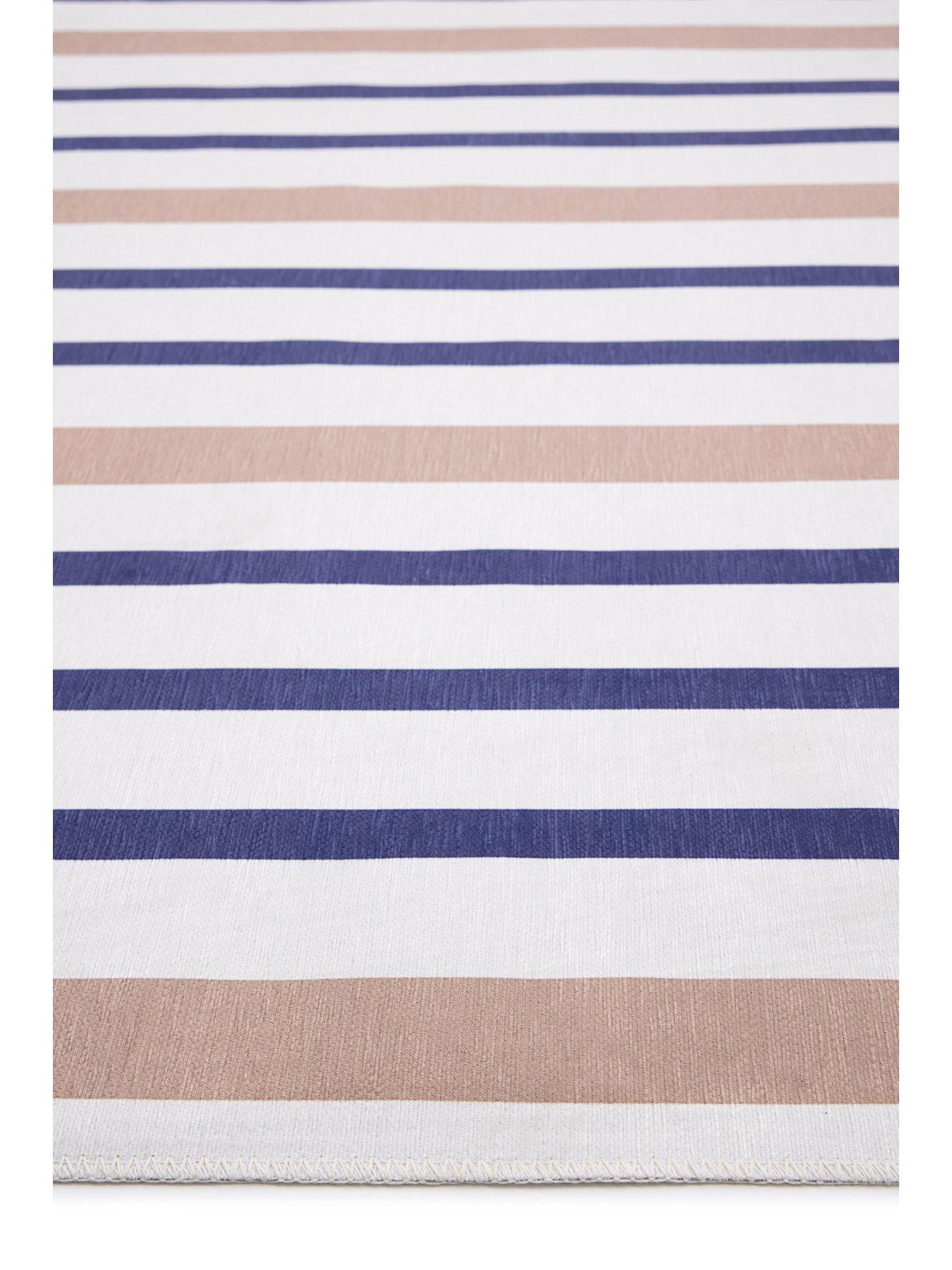 Very Home Coastal Washable Stripe Rug 120x170cmOur new range of My Washable easy-care rugs are an excellent solution for busy households where spills are bound to occur. Made from soft, yet hard wearing Chenille and TRP with a non-slip backing, meaning you can easily lay the rug down before and after washing. Ideal for high traffic areas such as your kitchen, hallway, dining room and living rooms. MACHINE WASH AT 30, DO NOT USE BLEACH. LINE DRYING IS RECOMMENDED. IF USING A DRYER, DO NOT USE HEAT. USE AN AIR-ONLY DRY CYCLE.