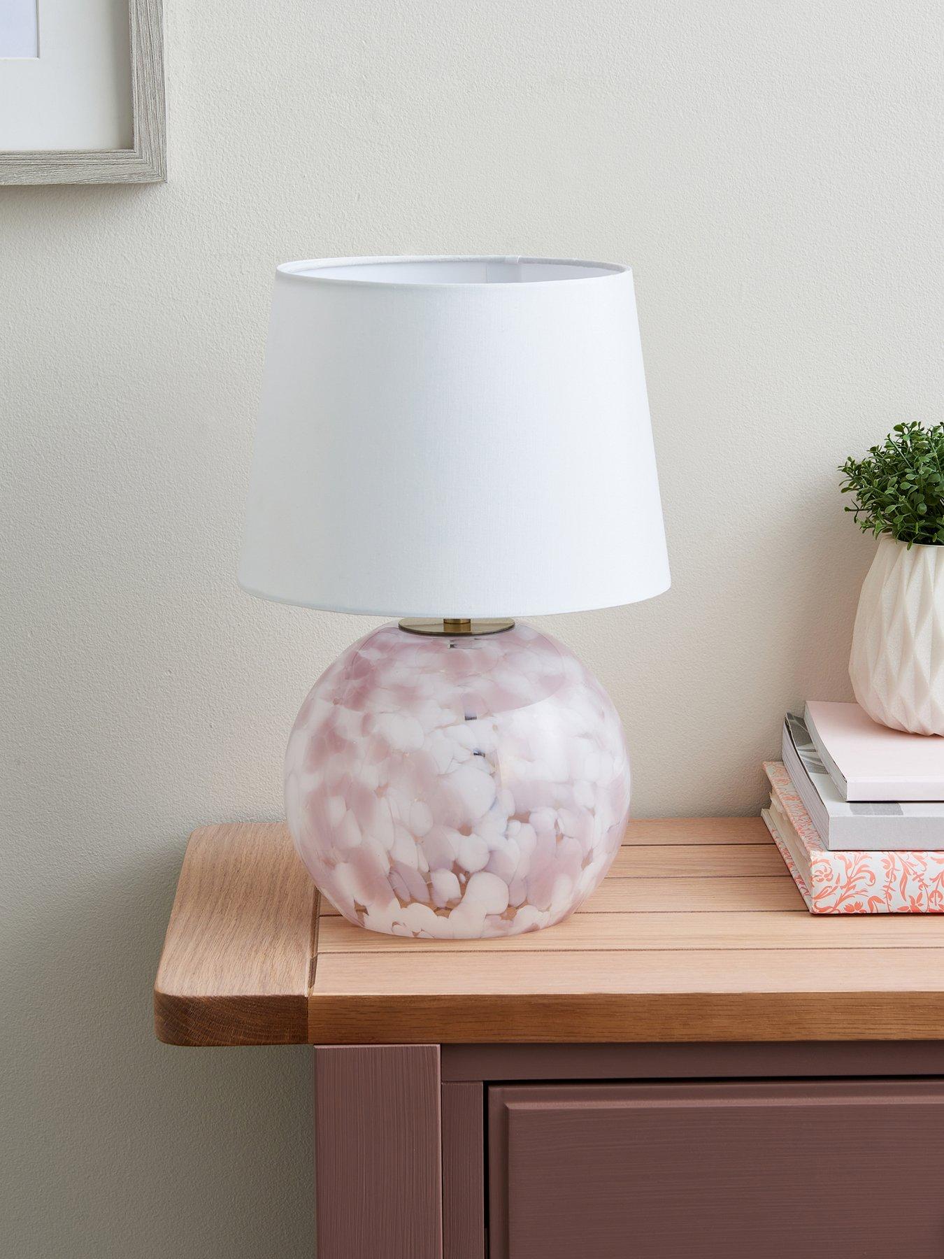 Very Home Confetti Table Lamp 32.7cmThe Confetti table lamp adds a playful touch with its pink and white confetti glass base. It features an elegant ivory tapered shade and supports a maximum of 6 watts E14 lamp. The lamp is equipped with an inline switch and comes with a 1.8m dark grey braided cable, making it a stylish and functional addition to any space.