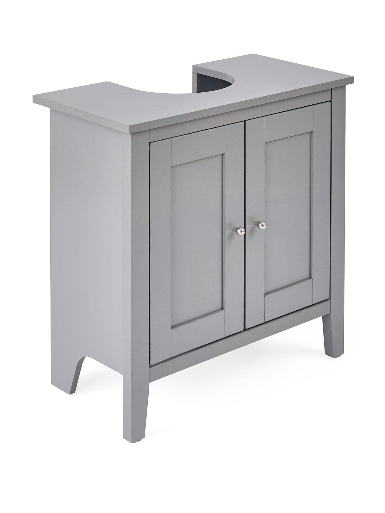 Very Home Corrie Under Sink Cabinet in Grey - FSC® CertifiedSmooth grey gives your bathroom a contemporary look, while the panelled doors add a touch of tradition. Detailed with dainty knob handles, this cabinet contains internal shelving for storage, making the most of the space under your sink that usually goes to waste.Please remember to measure your available space before ordering. Dimensions: Height 60, Width 59, Depth 29.6 cm