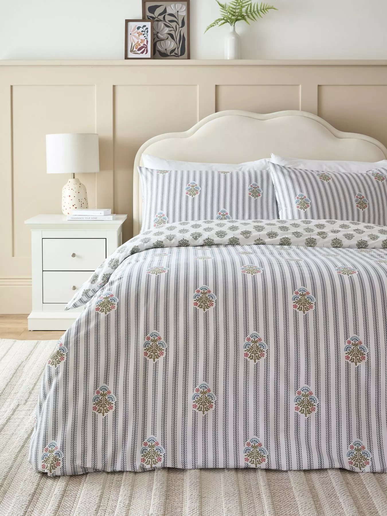 Very Home Country Stripe And Floral Print Duvet Cover and Pillowcase Set in Single, Double and King Sizes