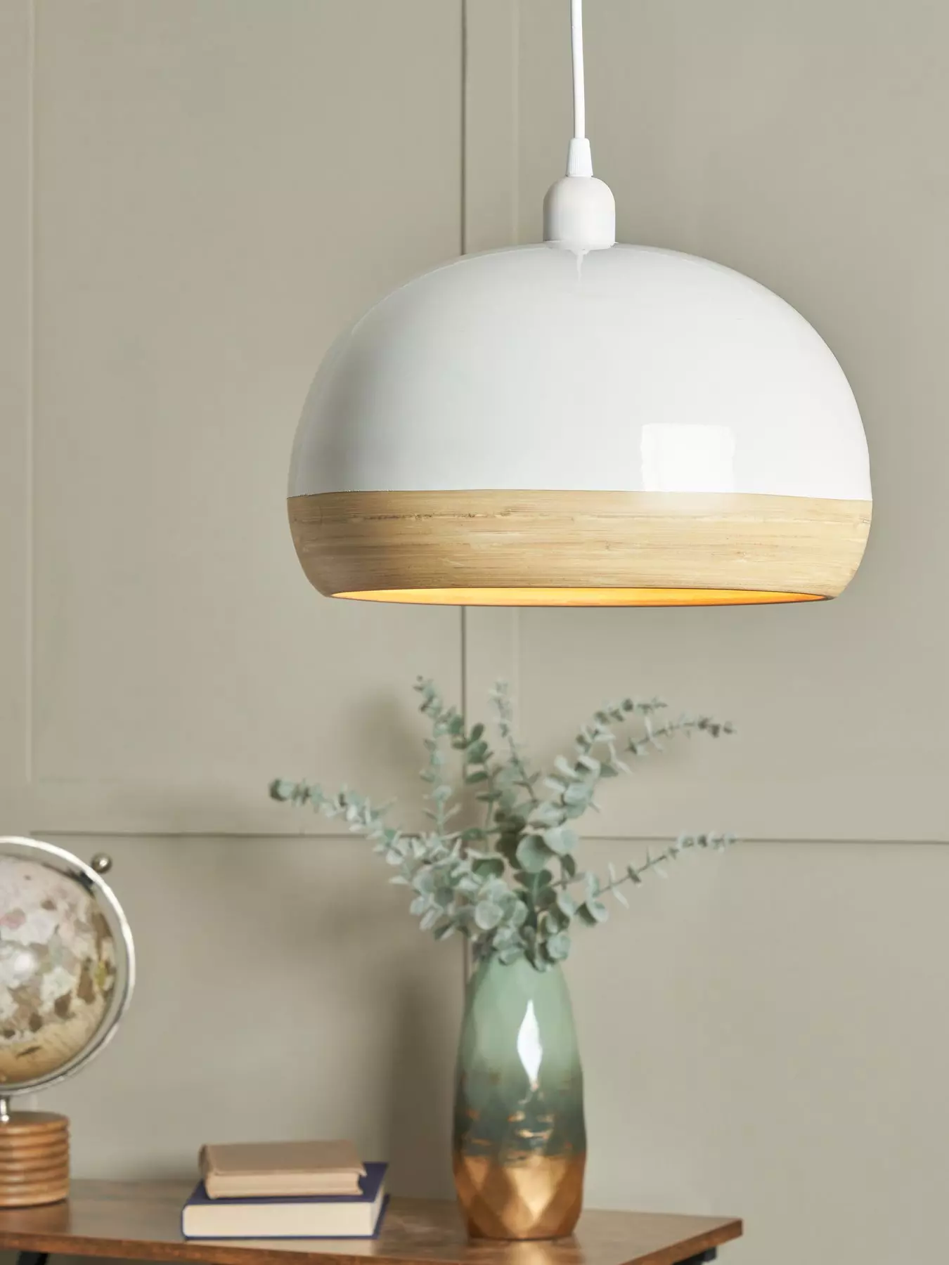 Full of Scandi charm, our Everyday Hampton Bamboo lightshade is the perfect finishing touch to laidback living spaces.Made from bamboo, the dome-shaped design is brought to life by a versatile white hue and offset by the natural warmth of the wood around the rim. This eye-catching shape and form help it to soften the light in your space, creating an inviting atmosphere we love.