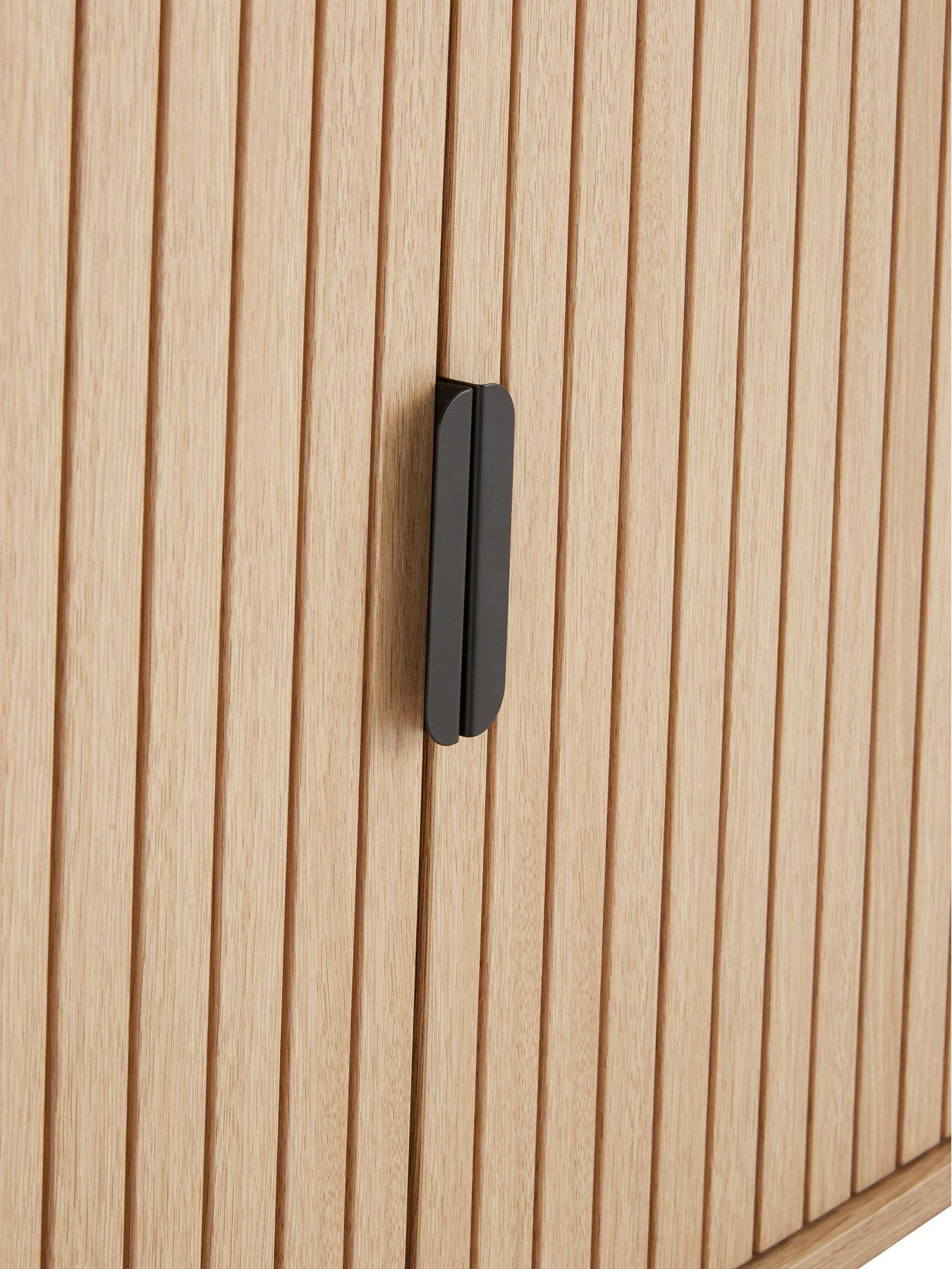This modern sideboard from the Harlow collection by Very Home is all about the eye-catching grooves to the doors which create a stylish slatted look. In a realistic oak-effect, it's detailed with black metal lip handles and black metal legs for an industrial edge.
