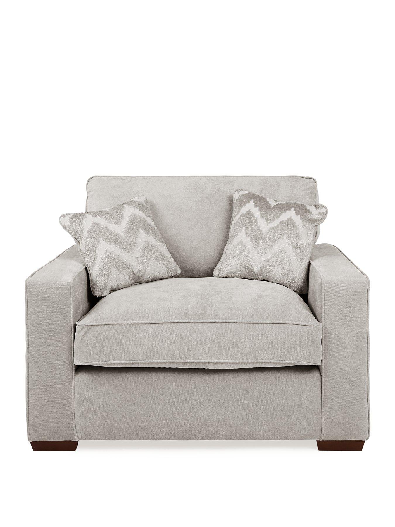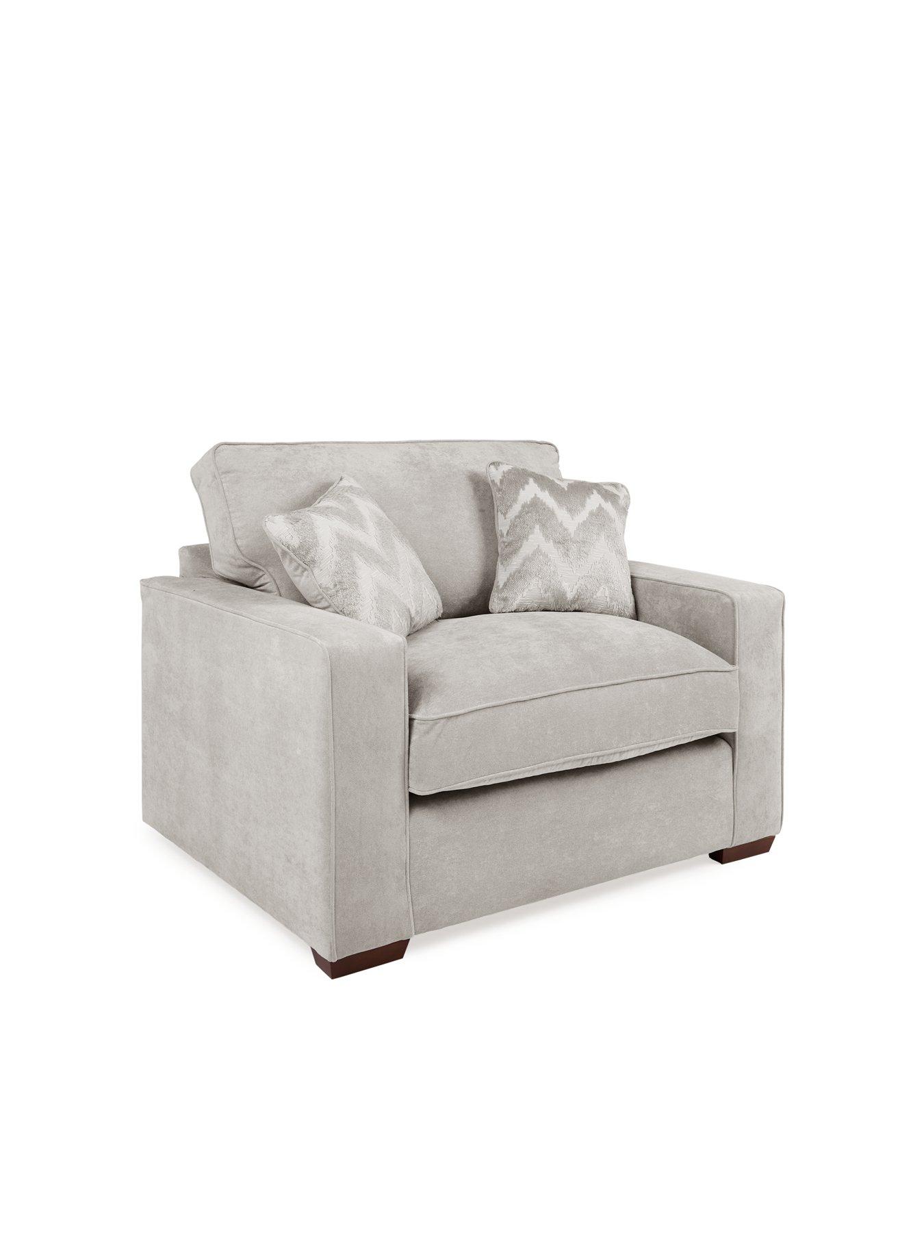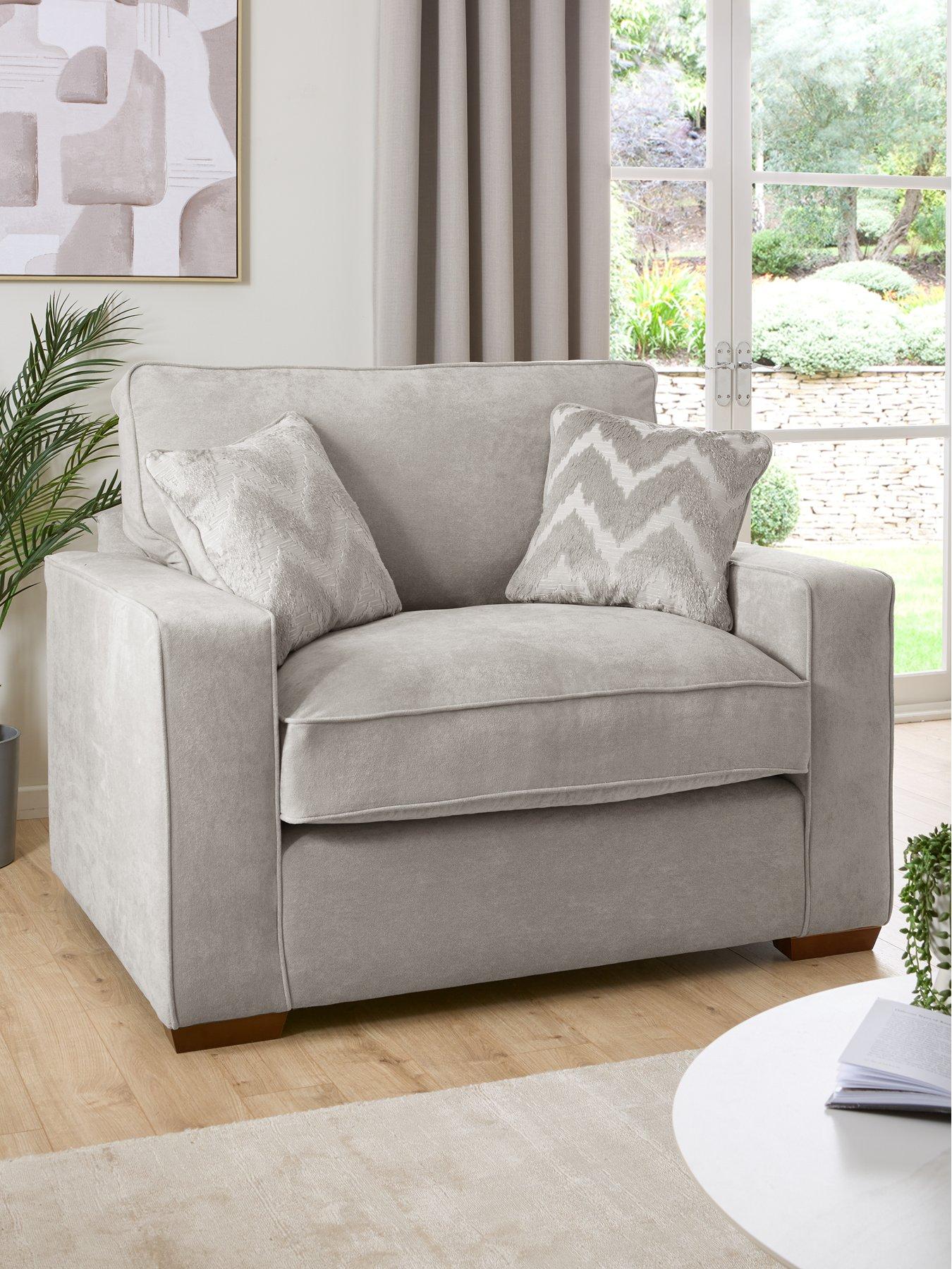 Very Home Jenna Fabric Snuggle Chair in in Charcoal, Navy or Silver - Made to Order in the UKH 96 x W 130 x 98 cmStriking style This Jenna snuggle chair is the epitome of modern style, with soft fabric that comes in a palette of navy, charcoal or silver. Two accent cushions include plain fabric as well as a version with a fashionable textured wave pattern to one side and a plain fabric to match the chair on the reverse. This lets you give them a style spin whenever the mood takes you. It's finished with wooden block feet that raise it slightly off the floor. Sit back and relax Get your favourite streaming series at the ready and chill out on the Extra Flex seat that mixes supportive foam core with a soft fibre topper, as well as the lofty fibre-filled back cushion. All the cushions are removable so you can give them a plump to keep them looking their best (make sure you do this daily). Want more from the Jenna range? Available separately in this collection are matching sofas, an armchair and much more. Free Swatch Service Get a feel for this fabric before you buy with our FREE swatch service. Simply email SwatchOrder@ClickSpares.co.uk with your name and address, along with the sofa range name, item number, colour choice and the name of the retailer’s website you’re ordering from. Your swatches will be delivered within 5 working days (subject to availability). Please remember to measure your available space before ordering. Dimensions: Height 96, Width 130, Depth 98 cm