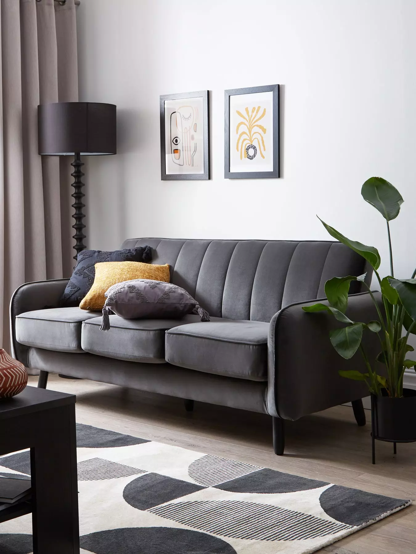 This touch-tempting fabric has a light pile that stands in different directions so that it catches the light at a variety of different angles. This effect is enhanced by the go-with-everything grey hue is comes in - perfect for matching to all sorts of living room colour schemes.