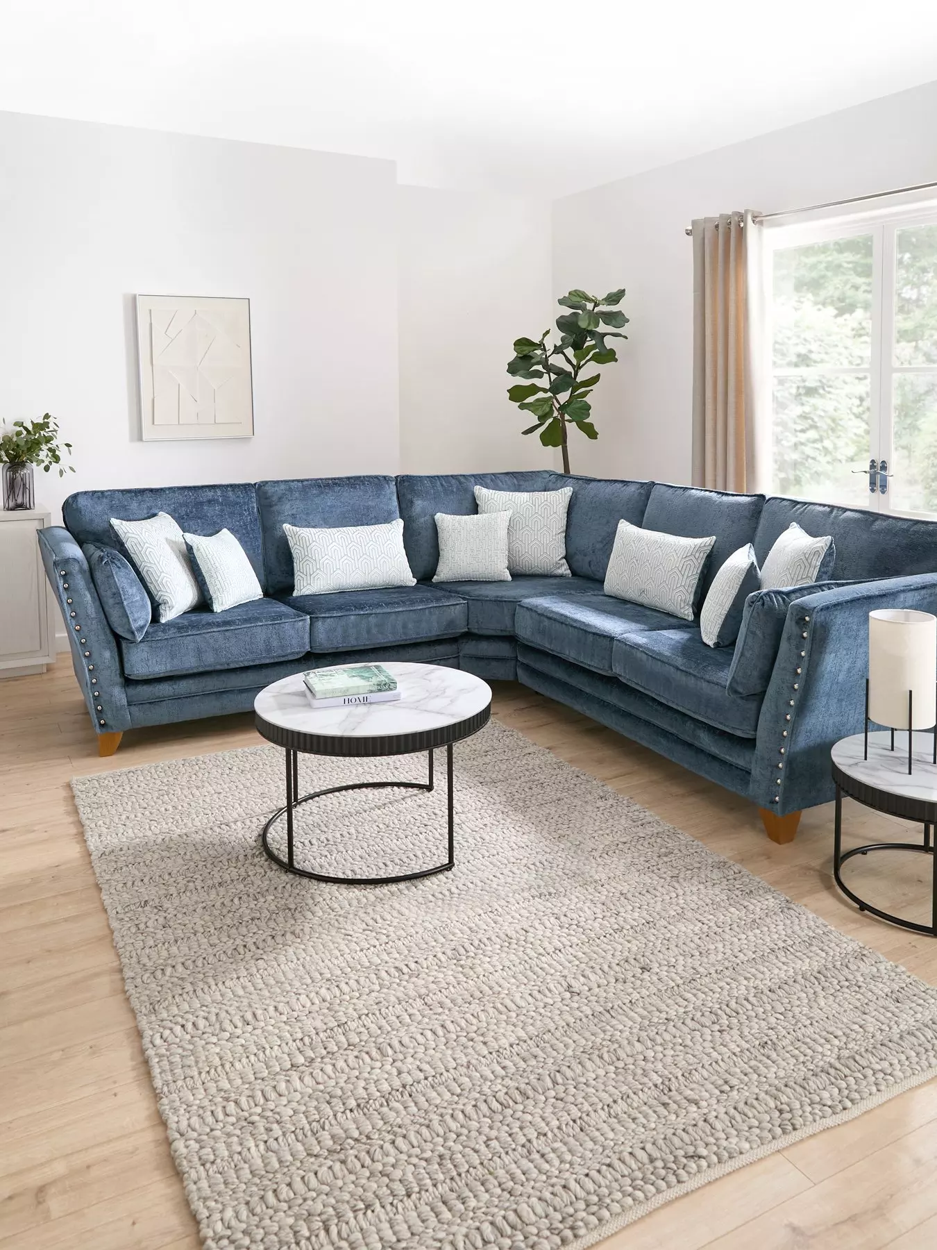 Very Home Lavello Fabric Corner Group Sofa in Denim Blue, Silver or Grey - Made to Order in the UK