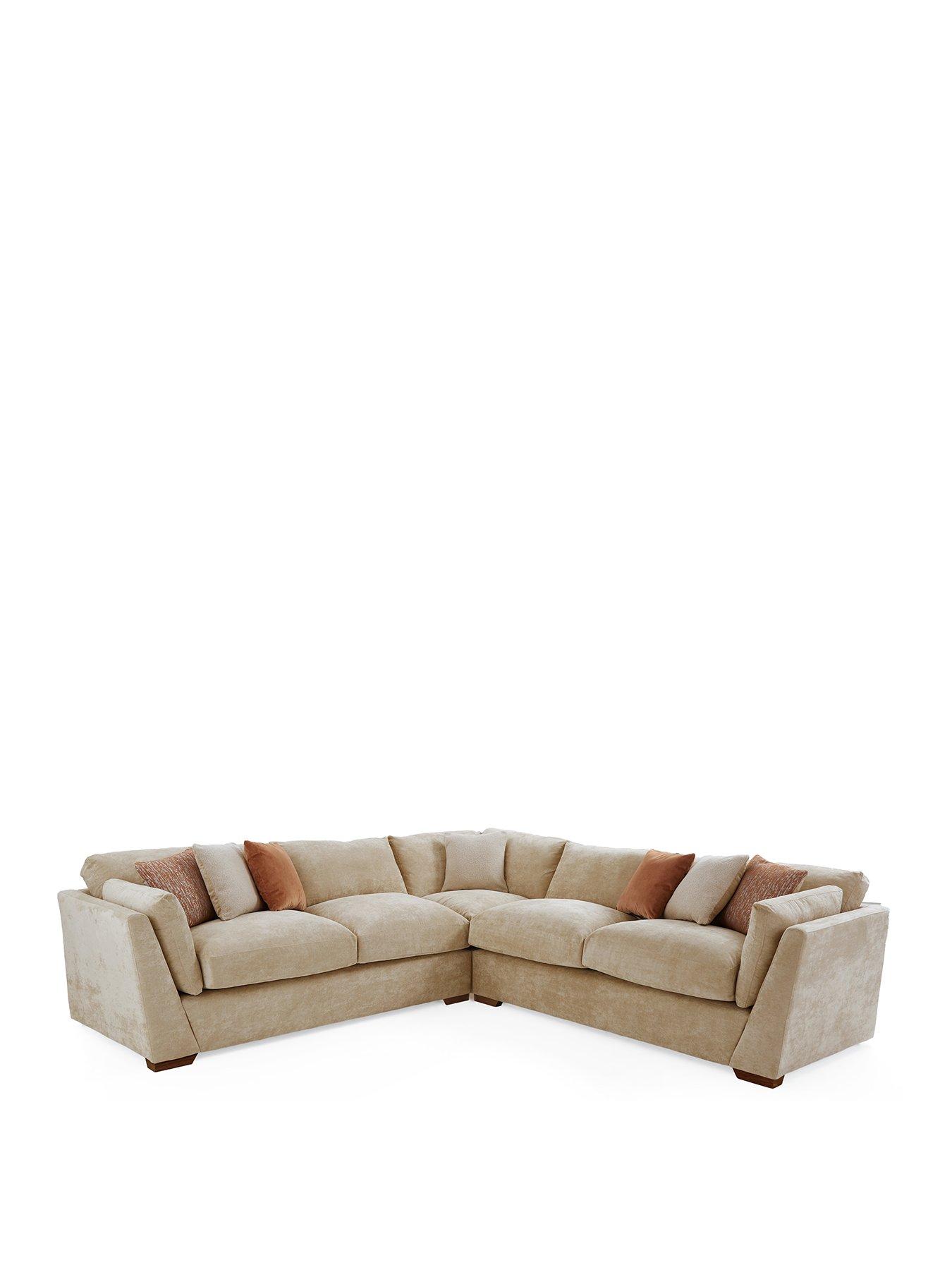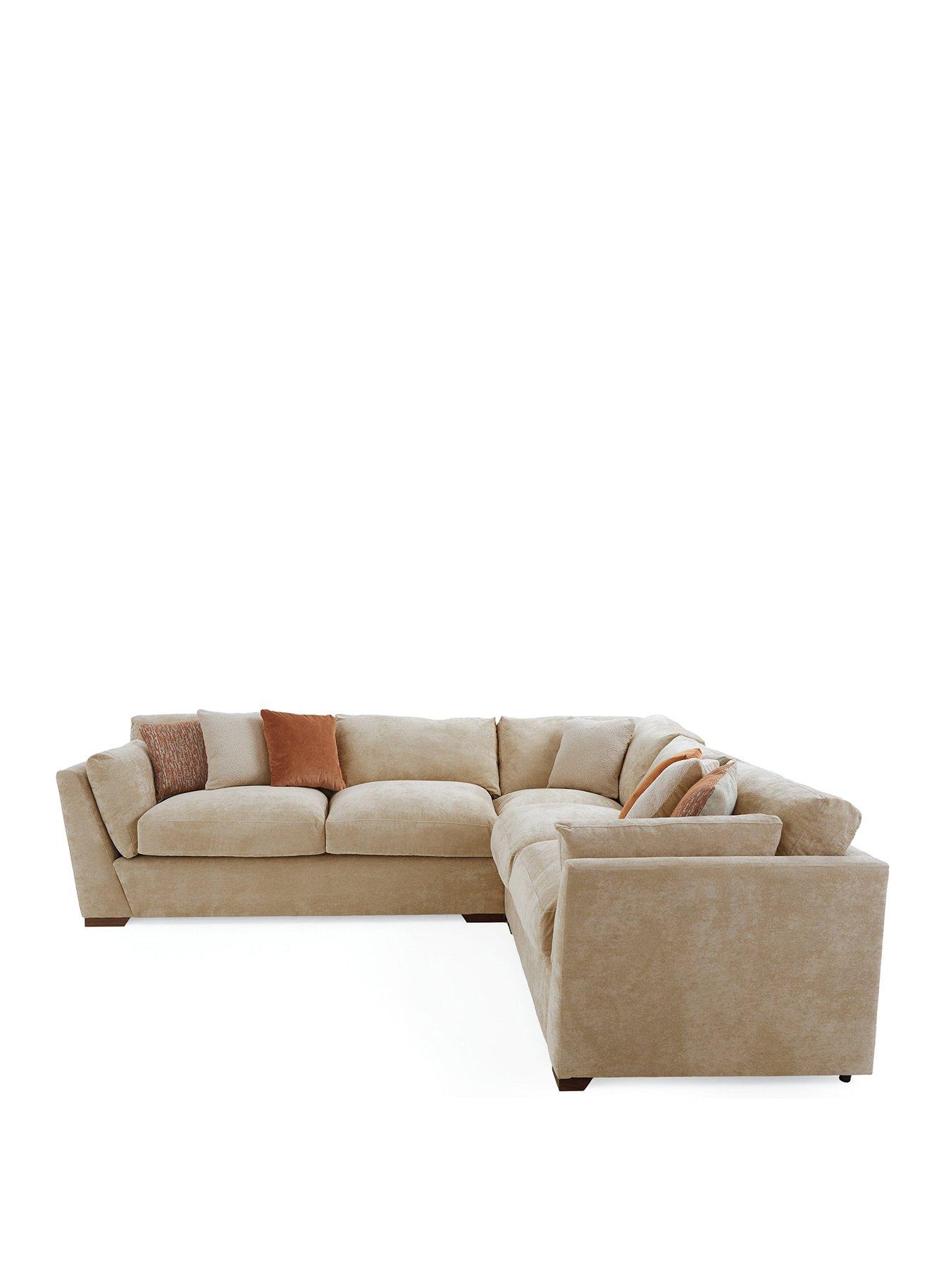 Very Home Lexington Fabric Corner Group Sofa in Natural or Grey - Made to Order in the UKH 87 x W 293 x D 203 cmStunning style This large Lexington corner sofa is upholstered in a woven fabric that comes in a choice of natural and grey colour options. Each of these is contrasted with a selection of scatter cushions, including a version with an abstract pattern on one side and a plain reverse to match the sofa, so you can flip them over whenever you feel like changing things up a bit. Modern details The narrow arms fall at a striking angle and are offset by chunky arm pads, while wooden block feet raise it off the floor. Comfy cushions Extra Flex seats combine a durable foam base with a lofty fibre topper, and back cushions are fibre-filled. All cushions are removable for easy plumping (do this daily to keep them looking their best. Free Swatch Service Get a feel for this fabric before you buy with our FREE swatch service. Simply email SwatchOrder@ClickSpares.co.uk with your name and address, along with the sofa range name, item number, colour choice and the name of the retailer’s website you’re ordering from. Your swatches will be delivered within 5 working days (subject to availability). Please remember to measure your available space before ordering. Dimensions: Height 87, Width 293, Depth 203 cm
