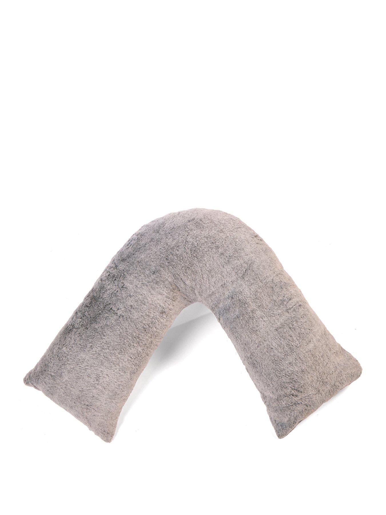 Very Home Luxury Faux Fur V-Shaped PillowSnuggle up with this luxurious faux fur V-shaped pillow, which is generously filled for plenty of support whether you’re whether sitting up or lying down. Made from soft and inviting faux fur fabric, it has a natural warmth that’s perfect for snuggling up.Perfect for watching TV, reading in bed, or for those who are working from home, it helps to create a cosy cocoon that elevates your surroundings in an instant. This V-shaped pillow comes in a gorgeous grey colourway and is packed with plenty of hollowfibre filling to provide plenty of comfort. For added convenience, it’s also machine washable, so it’s easy to keep it looking its best.