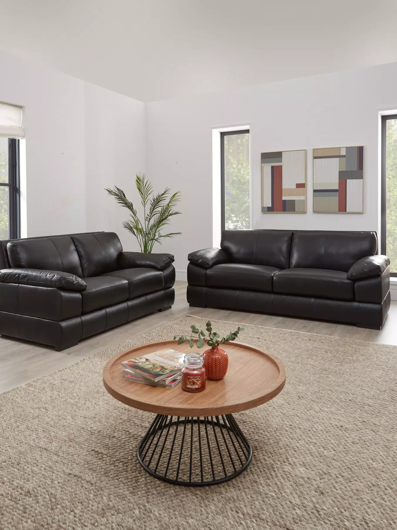 100% premium leatherDisplaying all the natural characteristics of the hide, the 100% premium quality leather will gradually gain even more character as it ages, making it a superb investment piece - it really is the sofa suite that gets better the longer you own it. The classic black shade will slide easily into a range of living room styles and colour schemes.