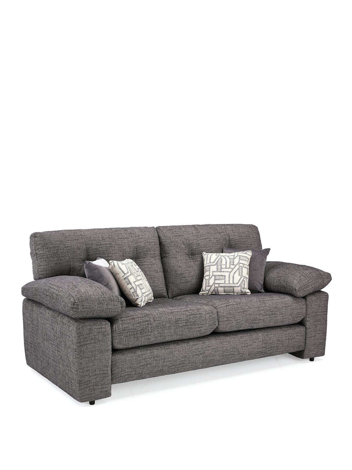 SAVE with this package that gives you the Very Home Megan 3 Seater and 2 Seater Fabric Sofas for a far lower price than if you purchased them individually - Made in the UKNext level loungingThe Megan sofa suite is generously proportioned and upholstered in a wonderful woven fabric that makes it the perfect set to fall onto at the end of a long day at work and relax with the family. You can pick from two great colour options - ivory and grey - each of which has a neutral quality that will match your existing decor. Modern looks Styled with wide cushioned arms and decorative buttons to the back cushions, each sofa comes complete with four accent cushions. Two of these flaunt a fab pattern to one side and a plain reverse, so you can give them a style spin whenever you fancy changing the appearance. Irresistible comfort Removable seats are foam-filled for support, while fibre-filled back cushions are removable and reversible for even wear. Give your cushions a plump every day to maintain their fullness and shape. Complete the look Available separately in this range is a 4 seater sofa and armchair, so you can spread the Megan style right across your space. Free Swatch Service Get a feel for this fabric before you buy with our FREE swatch service. Simply email SwatchOrder@ClickSpares.co.uk with your name and address, along with the sofa range name, item number, colour choice and the name of the retailer’s website you’re ordering from. Your swatches will be delivered within 5 working days (subject to availability). Please remember to measure your available space before ordering. Dimensions: 3 seater - Height 97, Width 220, Depth 97 cm 2 seater - Height 97, Width 205, Depth 97 cm