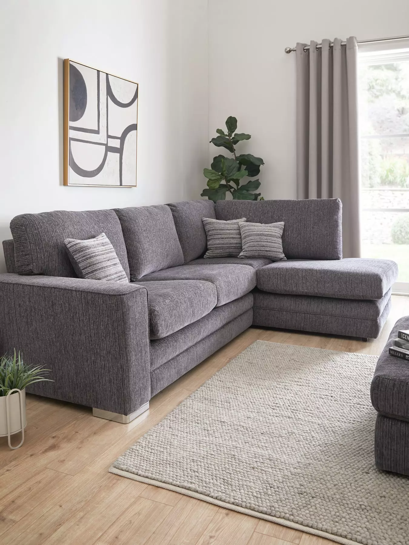 Very Home Minc Fabric Right Hand Corner Chaise Sofa in Charcoal, Ivory or Silver - Made in the UK