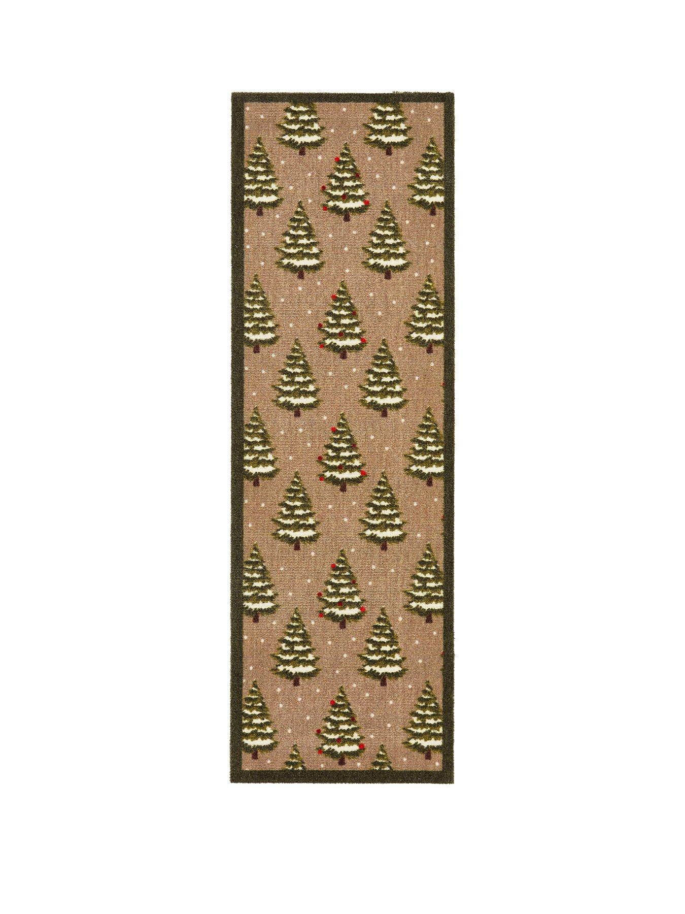 Very Home My Winter Trees RunnerMy Mat is the ideal all-purpose indoor mat, that is highly effective at keeping your floors clean. My Mat My Winter Trees runner is a repeat pattern of Christmas trees covered in snow and baubles set on a beige background with white dots and a dark green border. This range of brilliant designs and sizes provides easy cleaning and drying properties. With natural stain resistance, My Mats maintain freshness after continuous washes and uses. Traps dirt, dust & mud to protect your flooring and washable at 30°C.