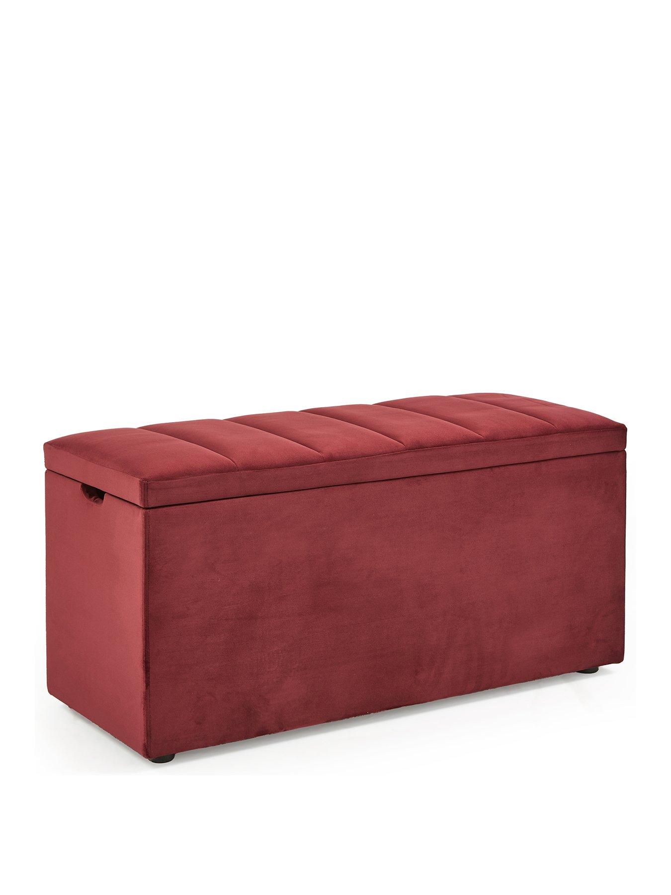 Very Home New Dakota Ottoman in BurgundySoft fabric in a burgundy shade covers this ottoman from Very Home's New Dakota collection. Ideal for placing at the end of your bed, you can stow away all your spare sheets.