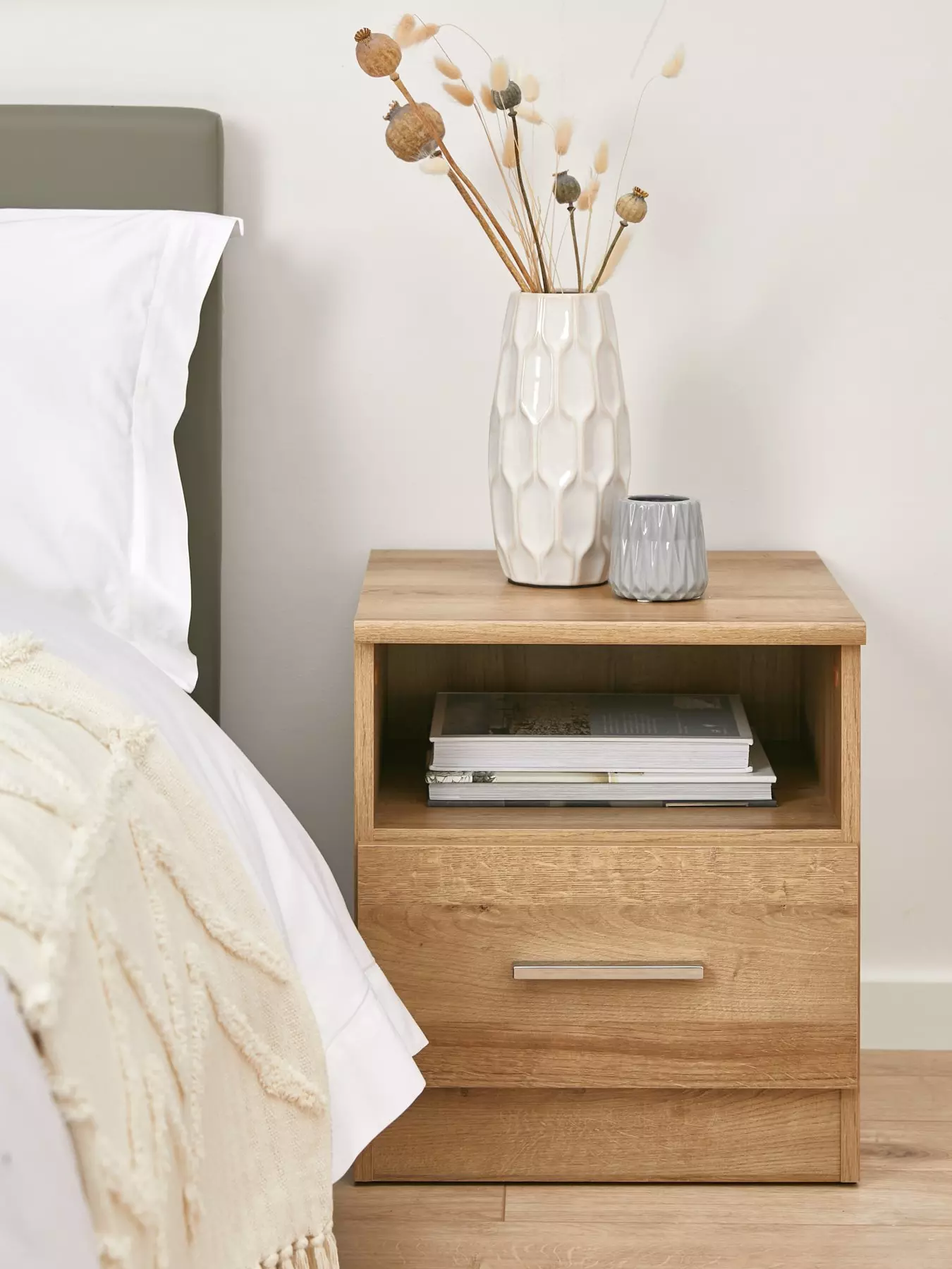 Very Home Panama 1 Drawer Bedside Cabinet in Grey, White or Oak Effect - FSC® Certified