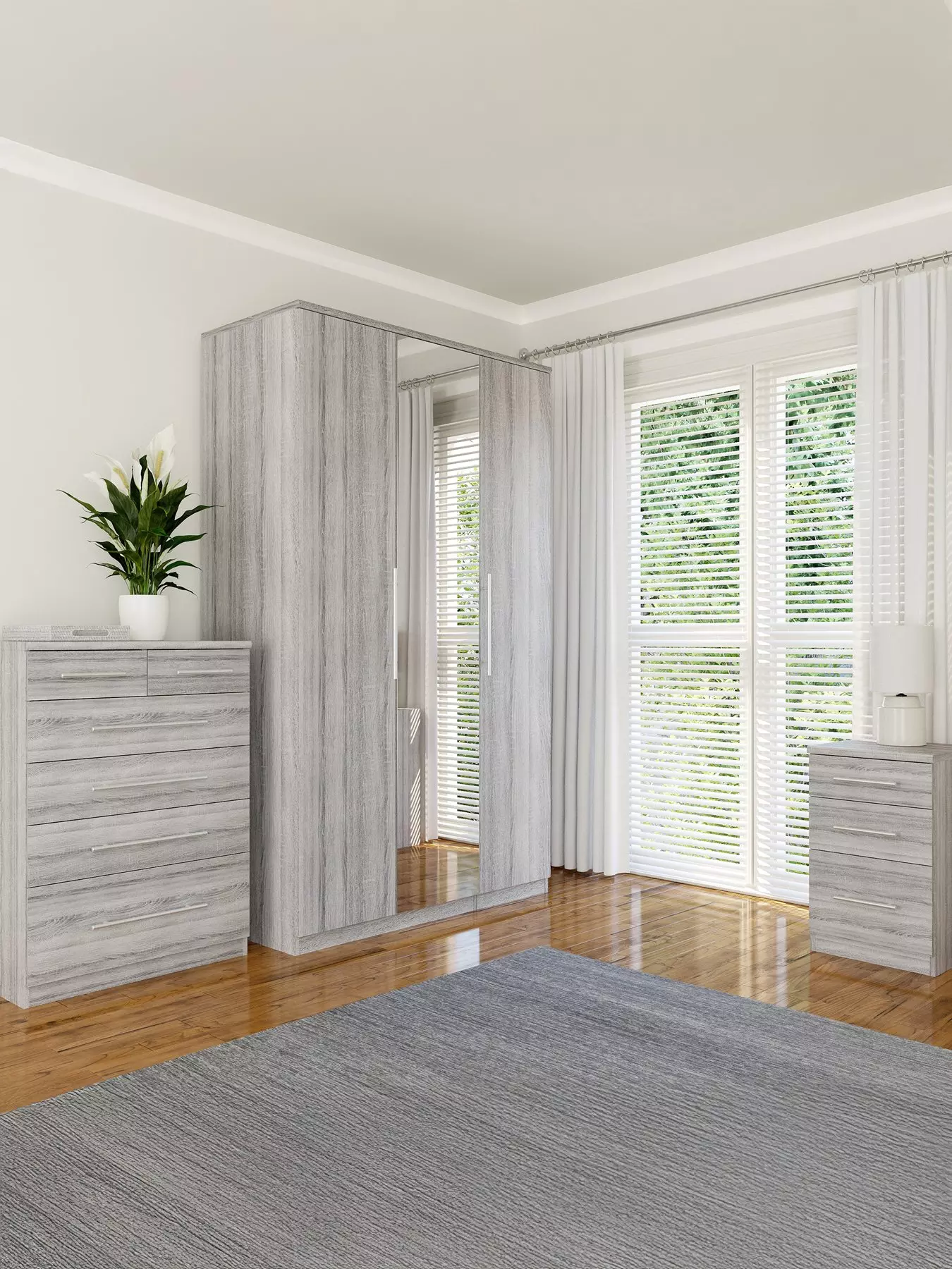 This 3 Piece Prague Bedroom Furniture Package by Very Home comprises a 3 Door Mirrored Wardrobe, 4 + 2 Chest of Drawers and a 3 Drawer Bedside Chest - FSC® Certified