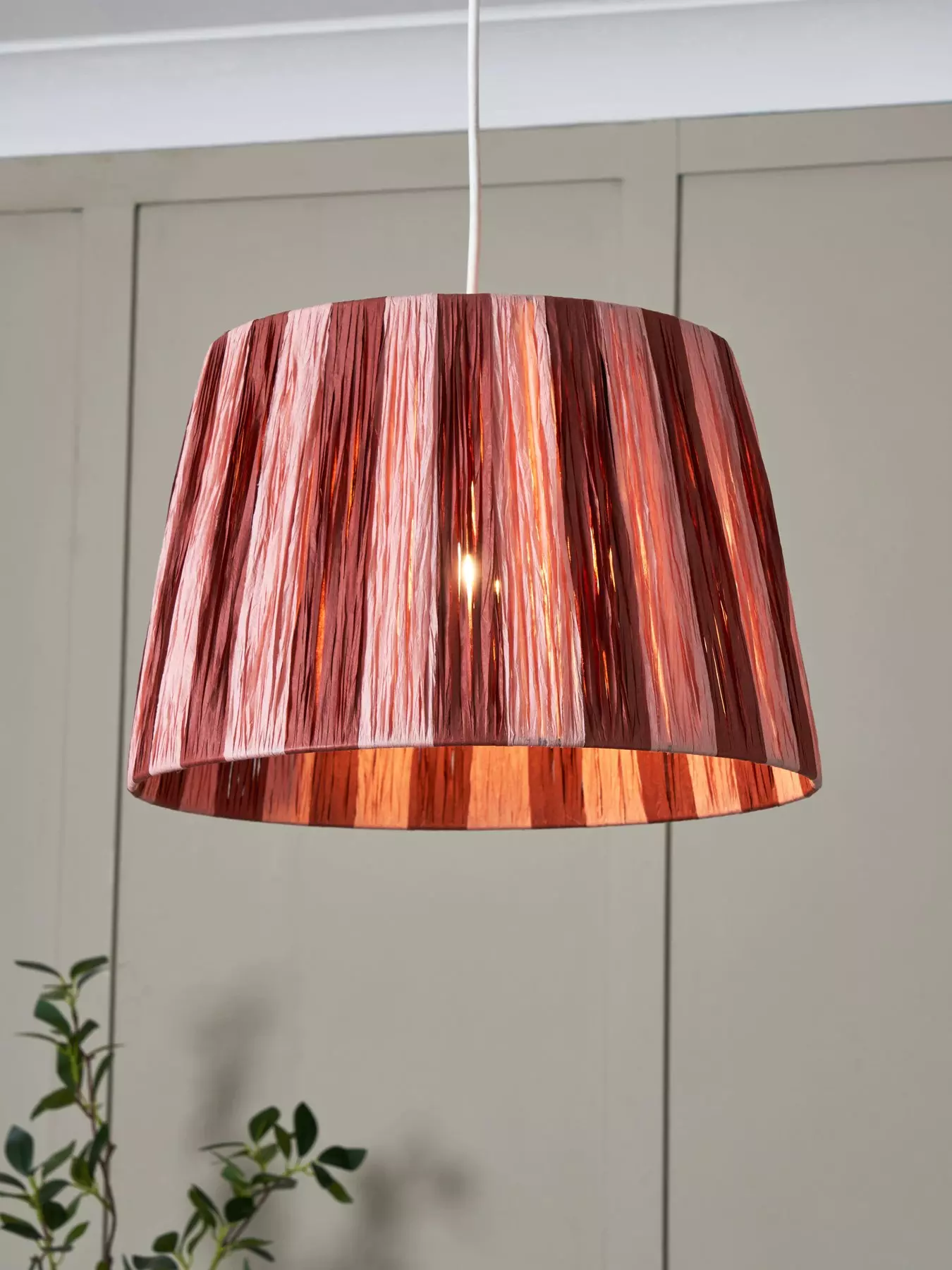 - Pink & Natural Striped Raffia Shade