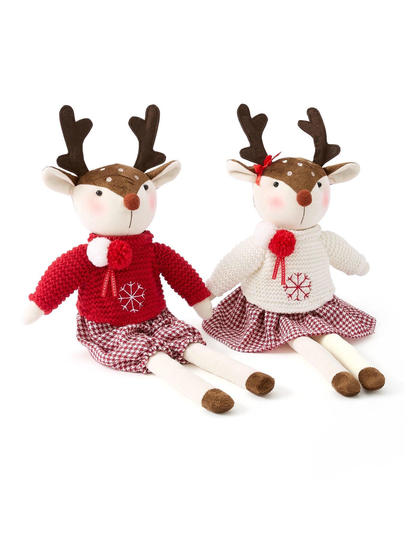 Very Home Set of 2 Plush Reindeer Christmas Decorations - 47 cmKids young and old will love seeing this plush pair of reindeer sitting in your Christmas grotto. Wearing matching check shorts and skirt, their jumpers are detailed with snowflake embroidery. Place them on a shelf, sideboard or at either end of your mantlepiece to add some quirky personality to your display.14 x 47 x 10 cm
