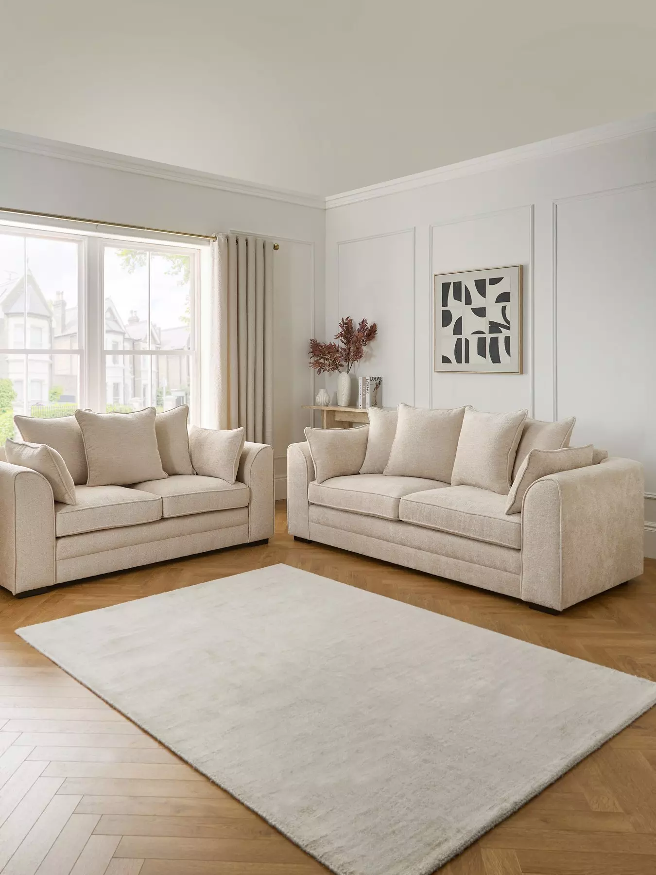 Modern comfortPart of Very Home's Soho collection, this modern sofa suite is wrapped in a super comfy fabric and available in a choice of natural and grey neutral tones that will match any colour scheme. Styled with slightly sloping arms and comfy side cushions, it can be matched with other seating from this collection.