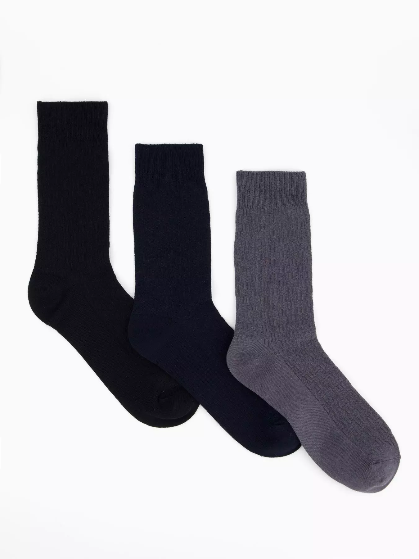 - 3 Pack Assorted Textured Socks - Black/navy/grey by Very Man