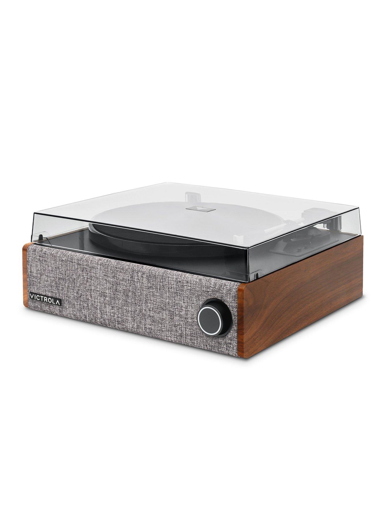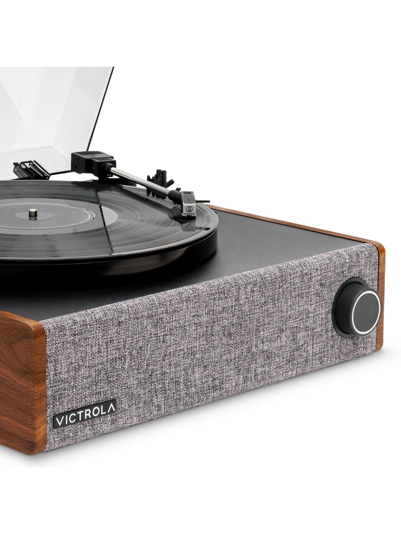 Victrola Victrola Eastwood LP (Walnut)Enjoy your favourite records with room-filling sound and the sleek, mid-century design of the Victrola Eastwood record player family with the new, larger Eastwood LP stereo Bluetooth record player.Anti-skip floating speaker system provides room-filling stereo sound and enhanced bass while preventing unwanted vibrations and skipping. Isolated platter and tonearm design provides an extra layer of vibration prevention to keep your records scratch- free and playing loudly. VINYLSTREAM TM Bluetooth output enables wireless streaming to Bluetooth speakers and headphones. Audio Technica AT-3600L moving magnet cartridge delivers exceptional audio quality, enhancing the clarity and richness of your music. Includes RCA and 3.5mm headphone outputs for private headphone listening or connecting to an external stereo system.