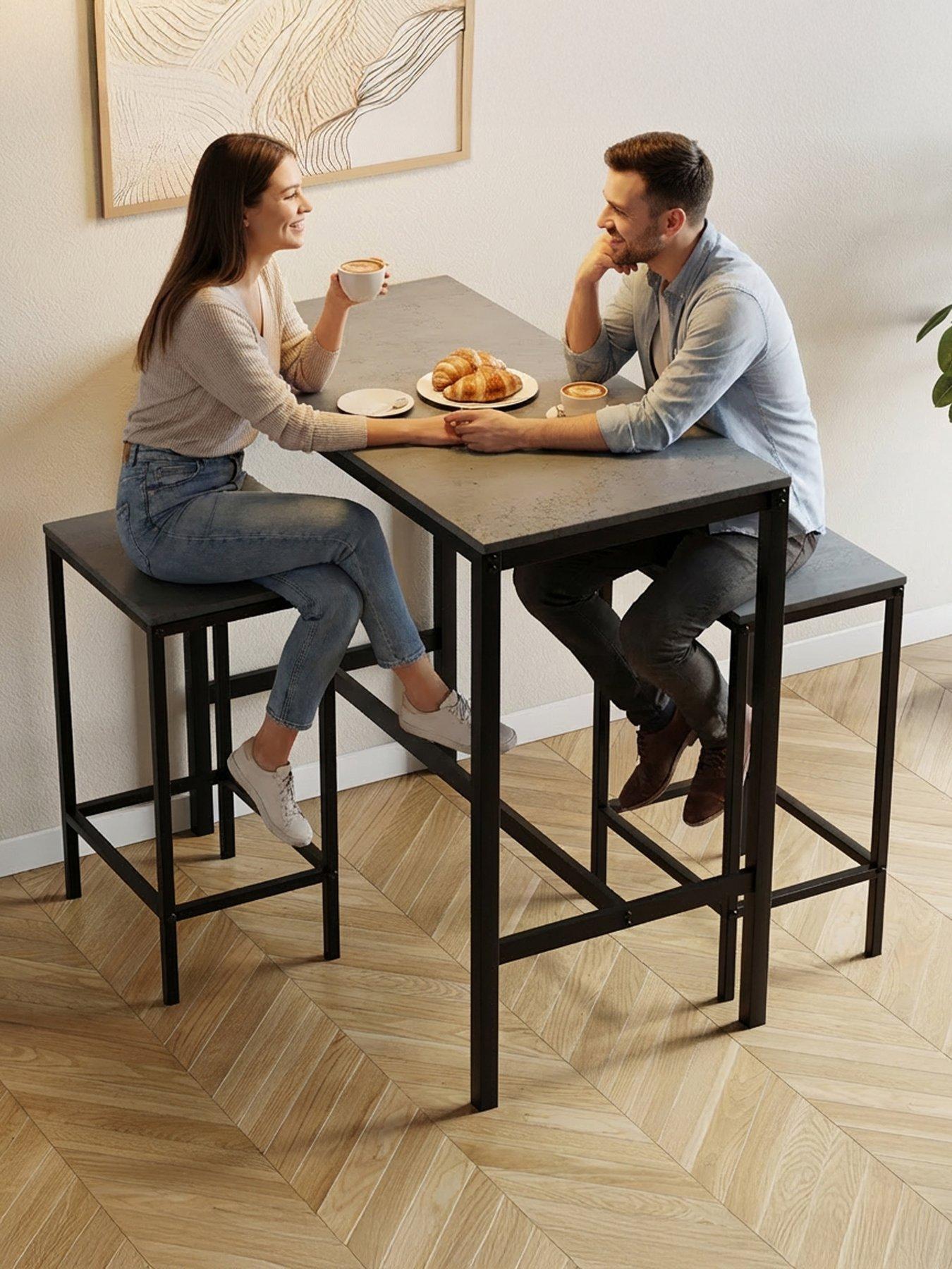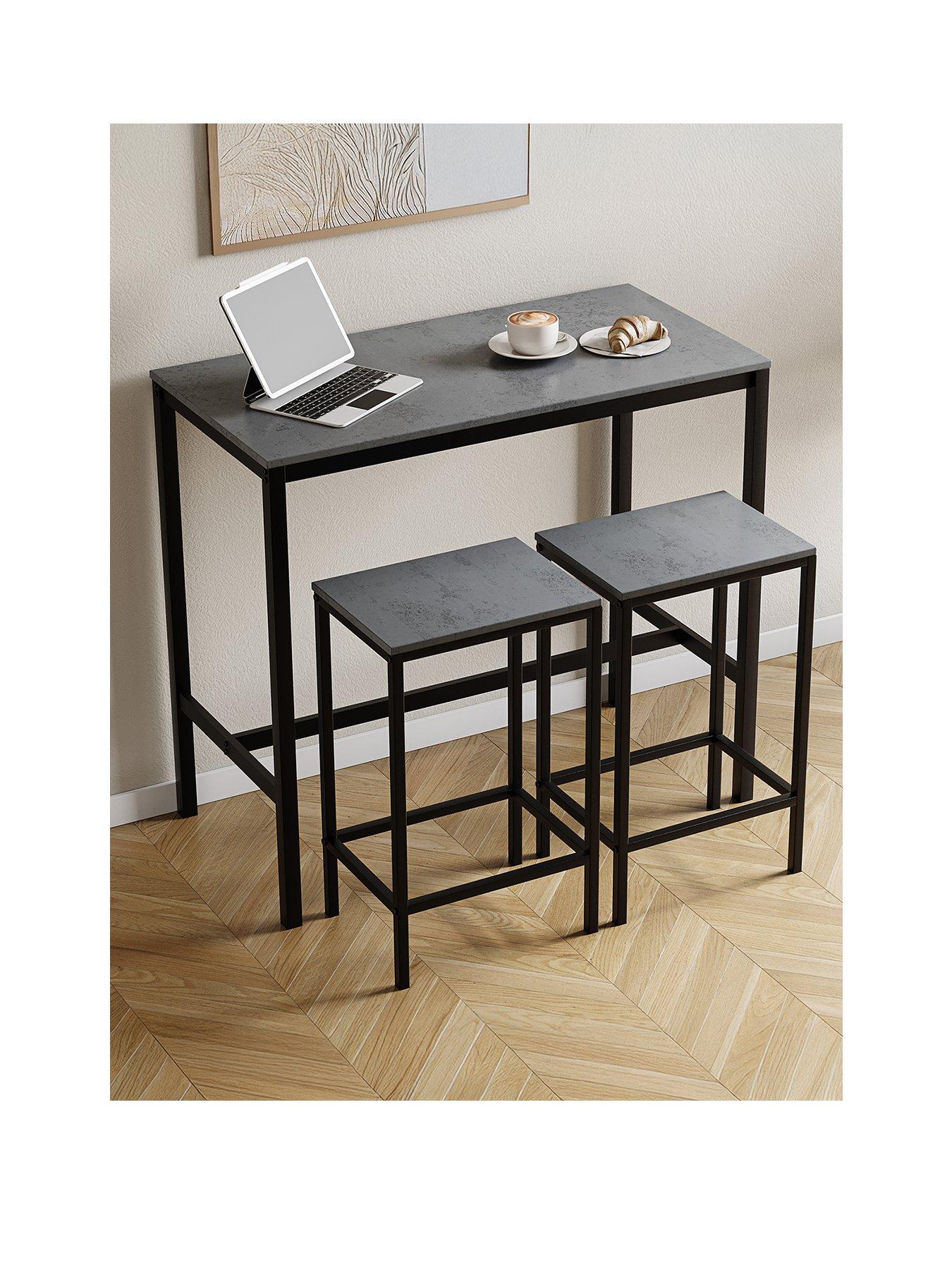 Vida Designs Roslyn 2 Seater Bar Table Set In Concrete GreyUpgrade your dining space with the Roslyn 2 Seater Bar Table Set, a stylish and practical addition to any modern home. Expertly assembled from durable carbon steel and MDF with a protective powder coated finish, this set offers a strong, stable structure designed for everyday use while maintaining a sleek, contemporary look. The concrete grey colour option adds warmth and character, making it easy to coordinate with a wide range of decors, from industrial-inspired kitchens to modern open-plan living areas. Perfectly sized for two, the compact design creates a cosy dining spot for couples or individuals, ideal for enjoying breakfast, casual meals or drinks with a friend. Combining durability, functionality and modern style, the Roslyn bar table set is a smart space-saving solution for apartments, kitchens and smaller dining areas.