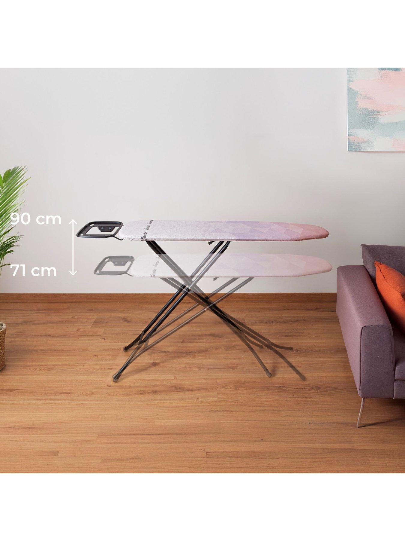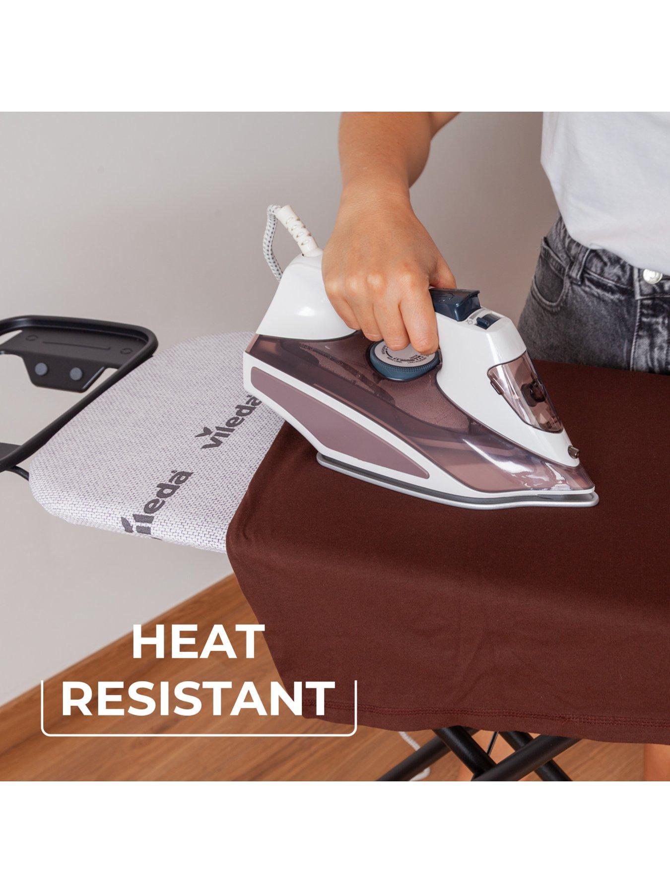 Vileda Diamond Ironing Board - SmallThe Vileda Diamond Ironing Board Small has a long-lasting cover that prevents yellowing and burn marks due to the titanium coating which gives a heat resistance of upto 200°C. - Cover surface looks longer like new due to the heat resistant Titanium coating. The Diamond Ironing Board can be easily height adjusted up to 90 cm - Iron rest suitable for any standard steam iron - Compact, light and easy to carry and store - Safety TÜV GS certified: the collapsible ironing board with a size of 114x33 cm equipped with a child safety system, also has a guarantee of 3 years. - The open dimensions are: L136 x W33 x H71-90cm. The closed dimensions are: L33 x W5 x H150cm.