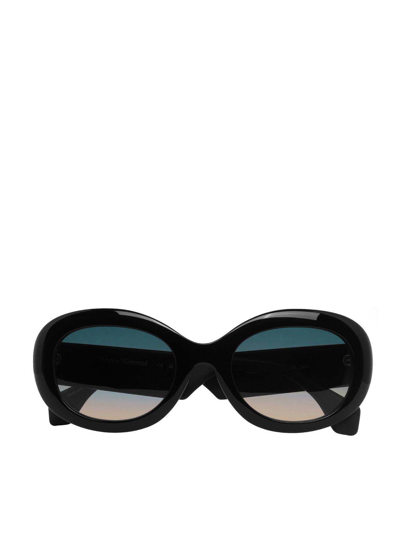 Vivienne Westwood VIVIENNE BLACK SUNGLASSThese oval sunglasses, with a slight vintage feel is shown here in classic black Acetate Renew, which is sustainable. The large silver 'orb' logo on each temple leaves no doubt that you're wearing sunglasses from Vivienne Westwood.