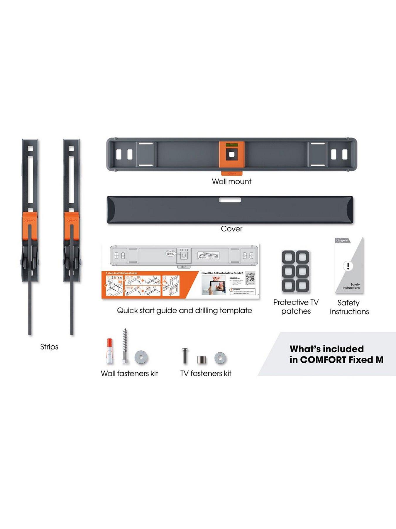 Vogels Flat display wall mount - 32-77" for OLEDYour OLED TV is mounted so tightly against the wall that it is extremely safe. Vogel's stylish COMFORT Fixed wall mount is ideal for families with children or pets. The wall mount cannot turn or tilt and is suitable for TVs from 32 to 77 inches up to 50 kg.Vogel's COMFORT Fixed TV wall mounts are TUV certified because they can handle three times their maximum weight capacity. The ClickLoc security system produces an audible click when positioning your OLED TV to the wall mount. Special patches protect the back of the TV from being scratched during installation. The packaging includes a drilling template, screws and Fischer DuoPower plugs. With the free Vogel's DrillRight AR App your first drill hole is easy to position. The wall mount has a built-in spirit level. Do you need to access your cables after installation? No problem. The wall mount has a special maintenance position. Warranty: 10 years.