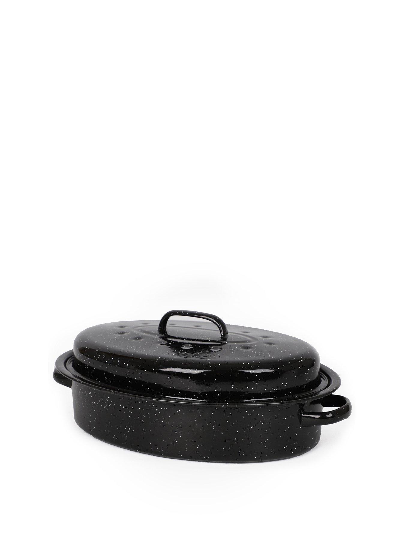 Vonshef Enamel Self-basting Roasting Tin With LidEnamel Self-Basting Roaster With LidThe juices will collect in the dimpled lid and automatically baste the meat. It'll also stop splatters, so your oven stays cleaner too. Suitable for both gas and electric ovens up to 230°C, this roaster is also dishwasher and oven safe. Crafted from durable steel with an enamel coating, it's non-stick making it effortless to clean. It's also hardwearing and shrugs off stains, spills and discolouring so it'll stay looking good and will perform for decades of dinners to come. Dimensions: (W)40cm x (H)18cm (D)27cm Length: 40cm (with handles) Length: 37cm (without handles) Width: 27cm Height: Without lid: 8cm Height: With lid but not handle 12cm Height: With lid and handle 15cm No Lid: Inner Length: 33cm Inner Width: 23 cm Inner Height: 6.5cm