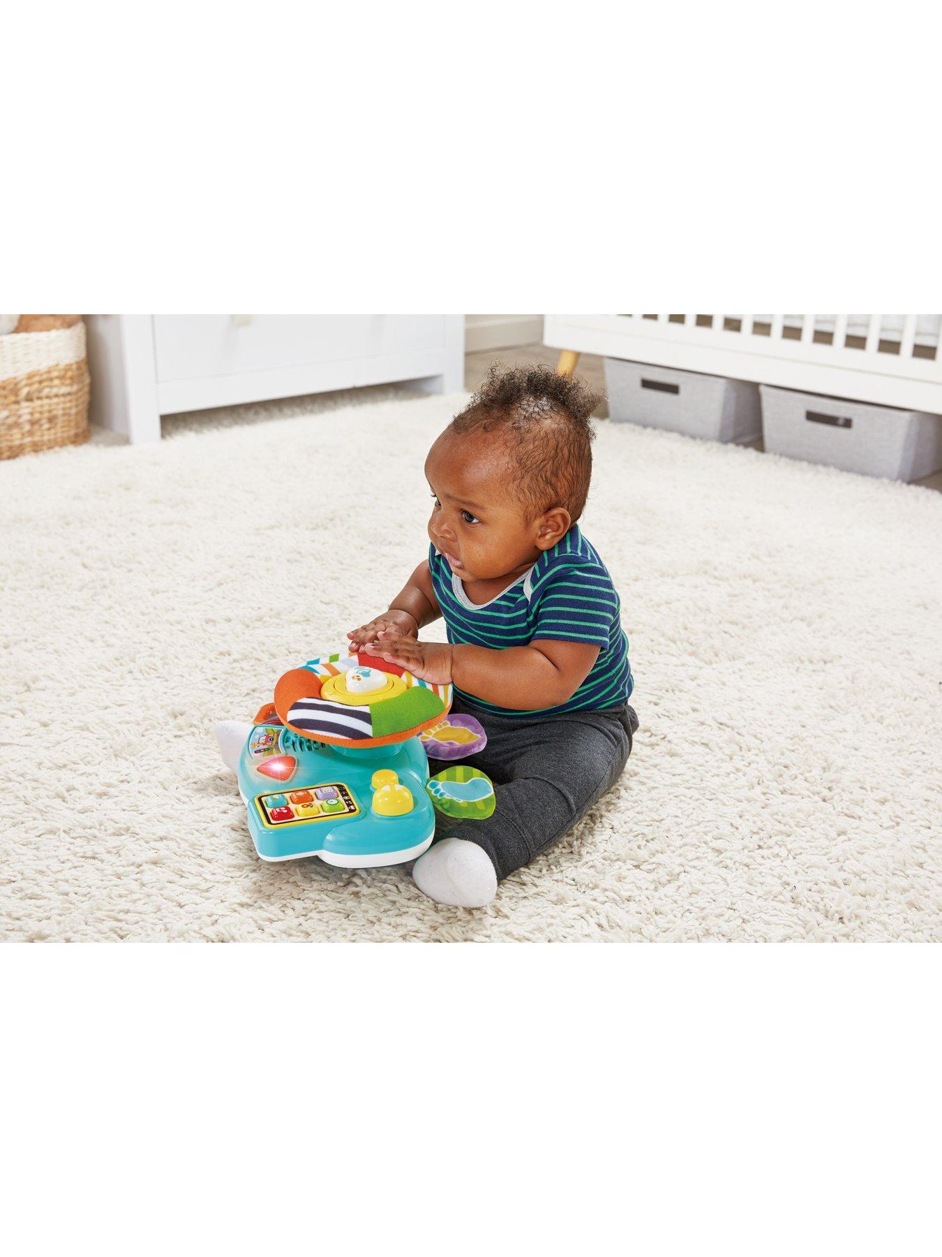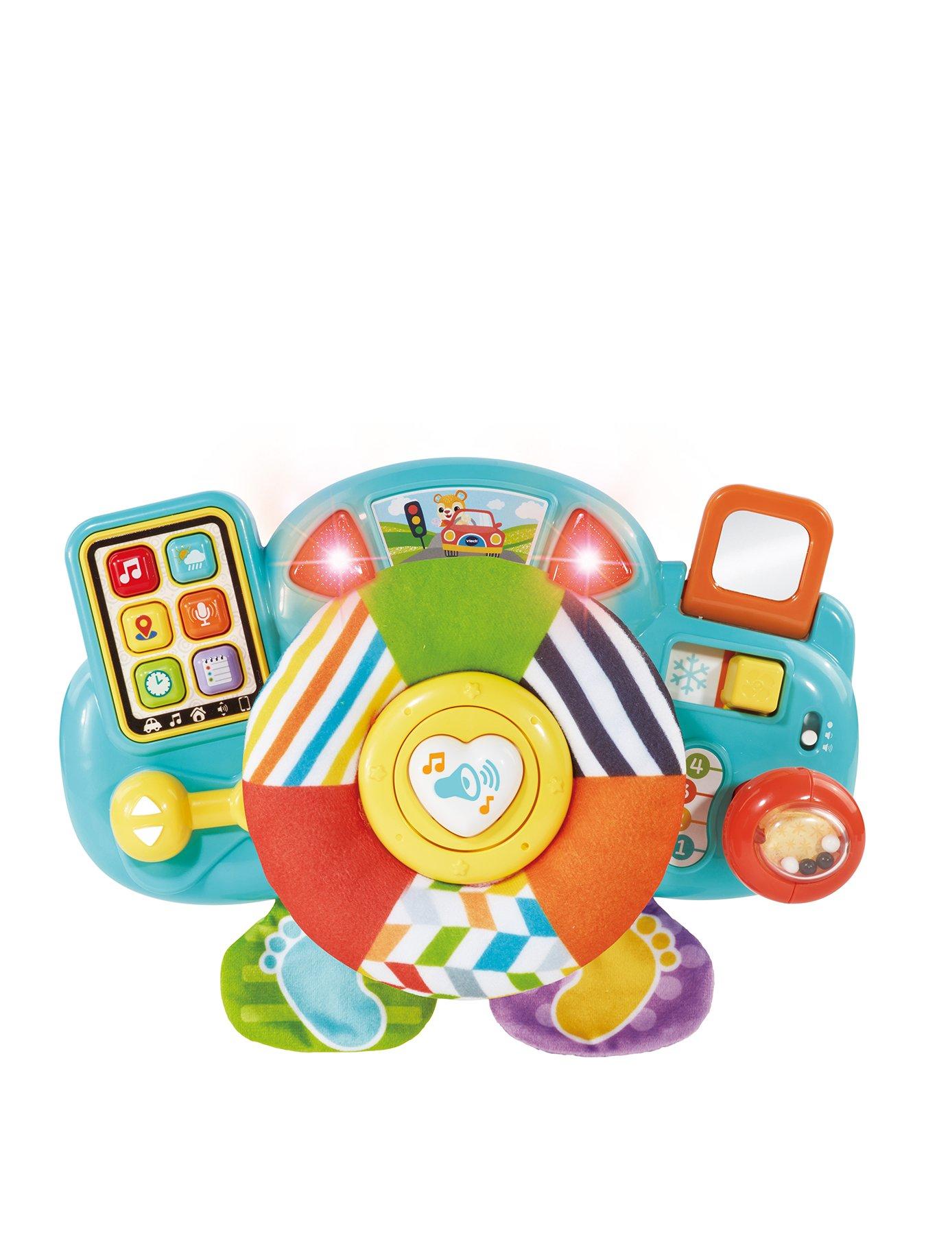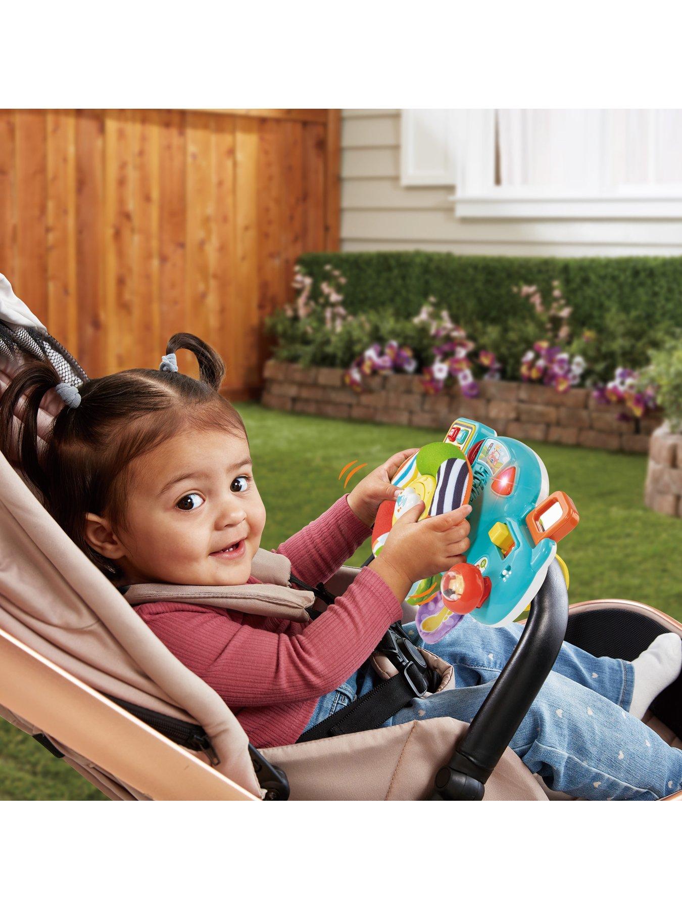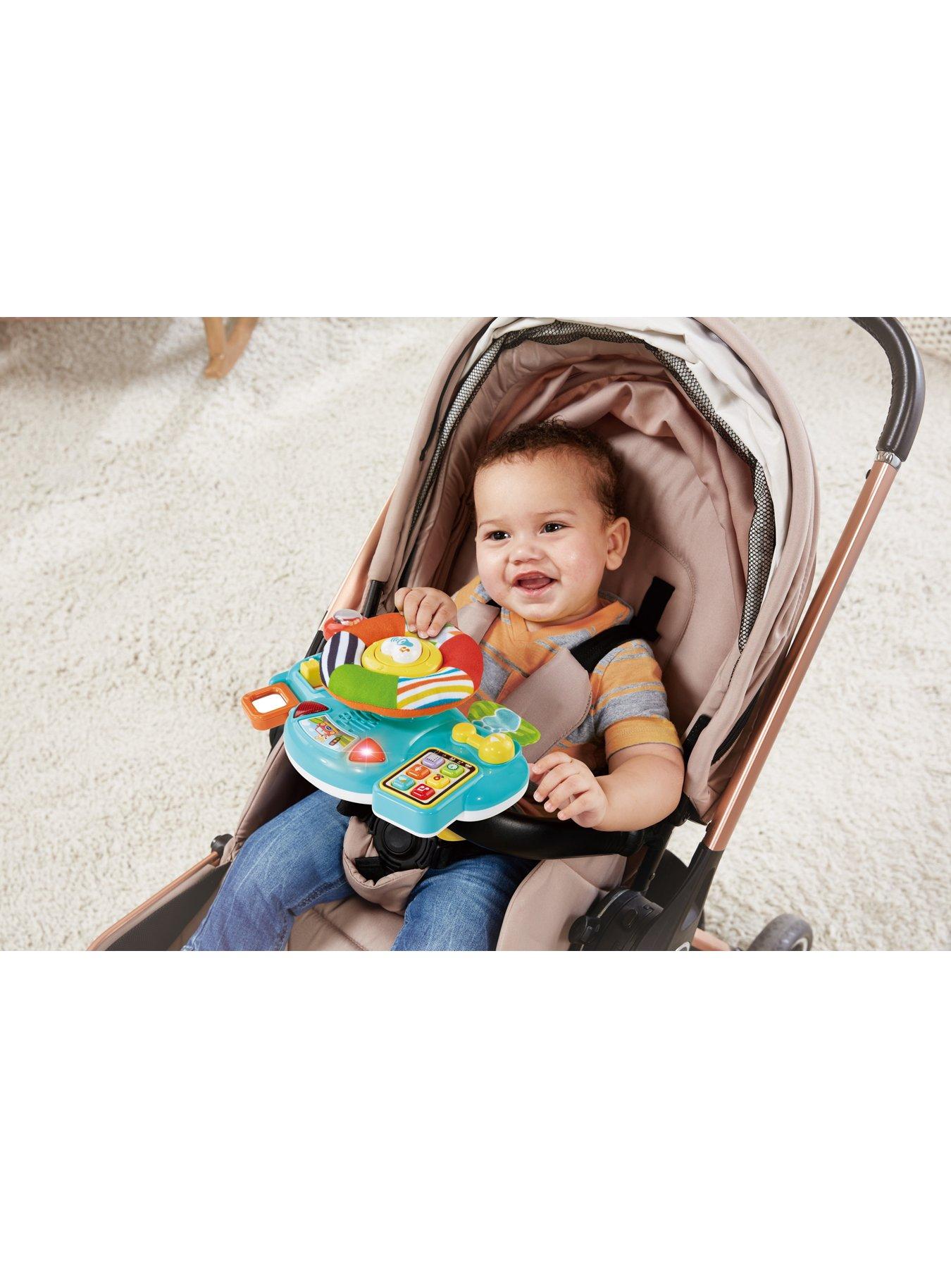 VTech Beep Beep Baby DriverCruise through playtime with the Beep Beep Baby Driver by VTech! Put baby in the driver's seat with this exciting driver that attaches to pushchairs. Discover cool car features with fun songs and phrases whilst playing sitting down or on-the-go! Bright multicoloured car parts attract attention, encouraging baby to explore 8 activities! Press the 6 control panel buttons for fun role-play phrases, including weather, traffic updates and more! Spin the brightly coloured fabric steering wheel, slide the temperature control switch and push the squeaky horn button! Twist the self-discover mirror, feel the soft crinkle pedals, slide the indicator and the gear stick too!