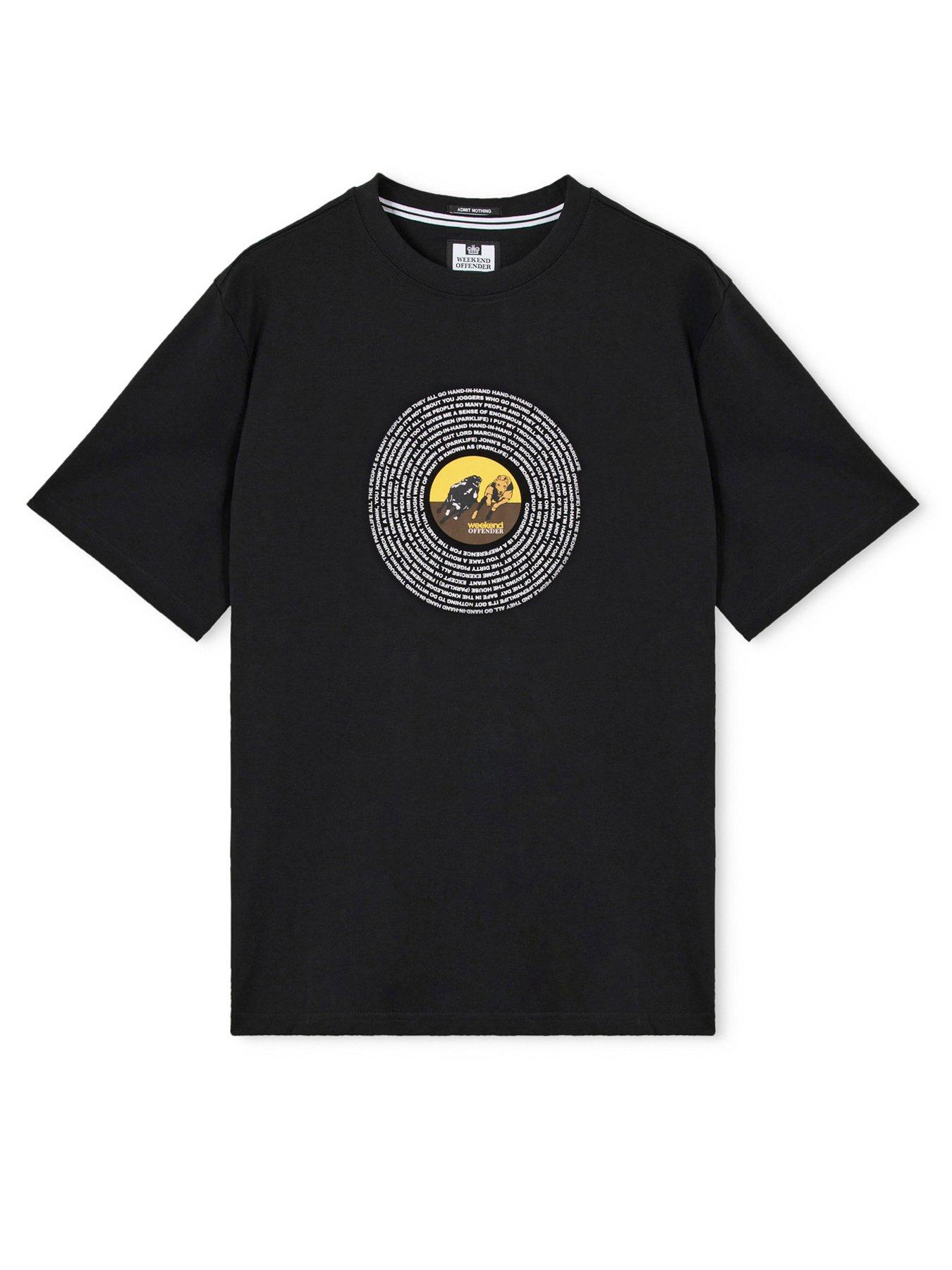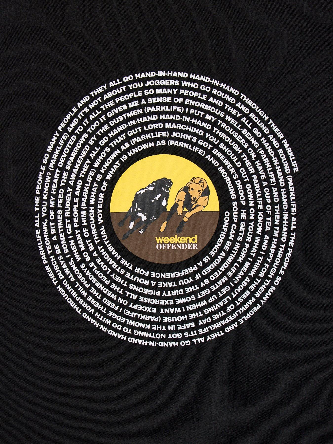 Weekend Offender Weekend Offender Wansdown Graphic Short Sleeve T-shirt - BlackA vine-shaped spiral of iconic lyrics from Blur's Parklife wraps around a bold reinterpretation of the legendary album cove