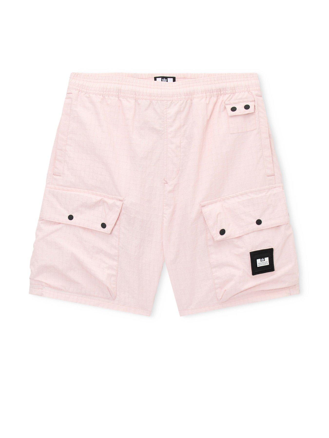 Weekend Offender Weekend Offender Zemmouri Technical Multi Pocket Waterproof Shorts - Light PinkCustom WO 100% Nylon large ripstop with 3D braided reinforcement threads for high tensile strength and textured finish. Treated with an additional DWR (Durable Water Repellent) coating.